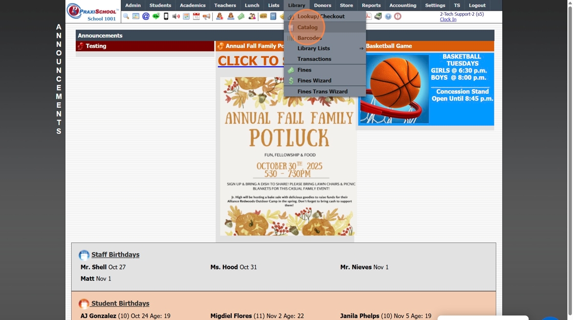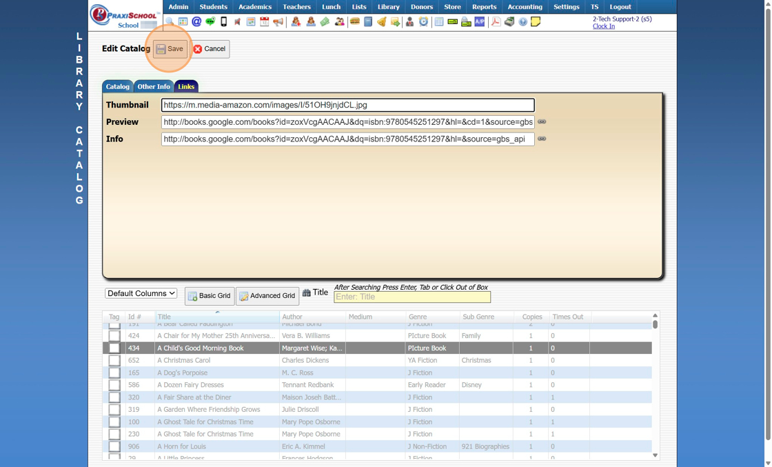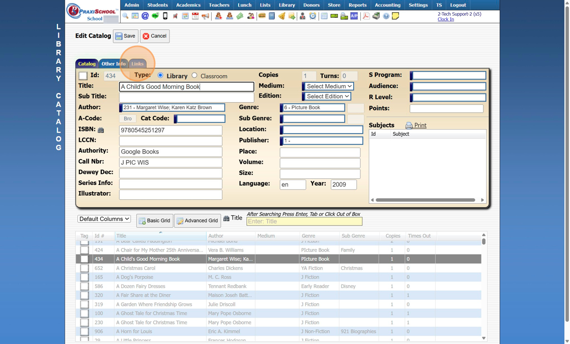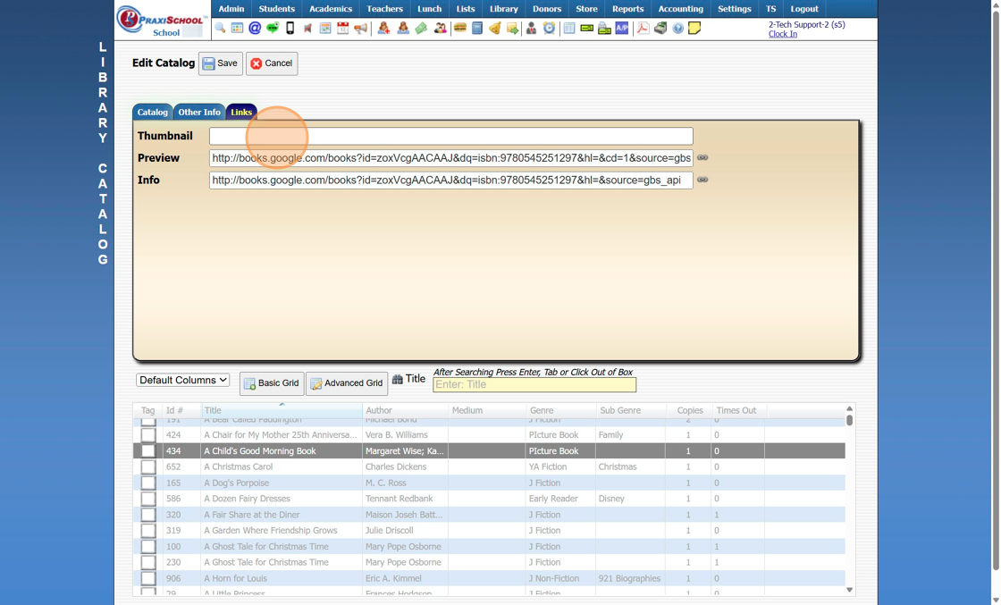 Adding a New Book to the Library Catalog 1. Navigate to https://app.praxischool.com/settings_announcements.php 2. Click "Library" 3. Click "Catalog" 4. Click "Add" Adding a Book Manually 5. Enter Title, Select or Add the Author and ISBN (Add the ...