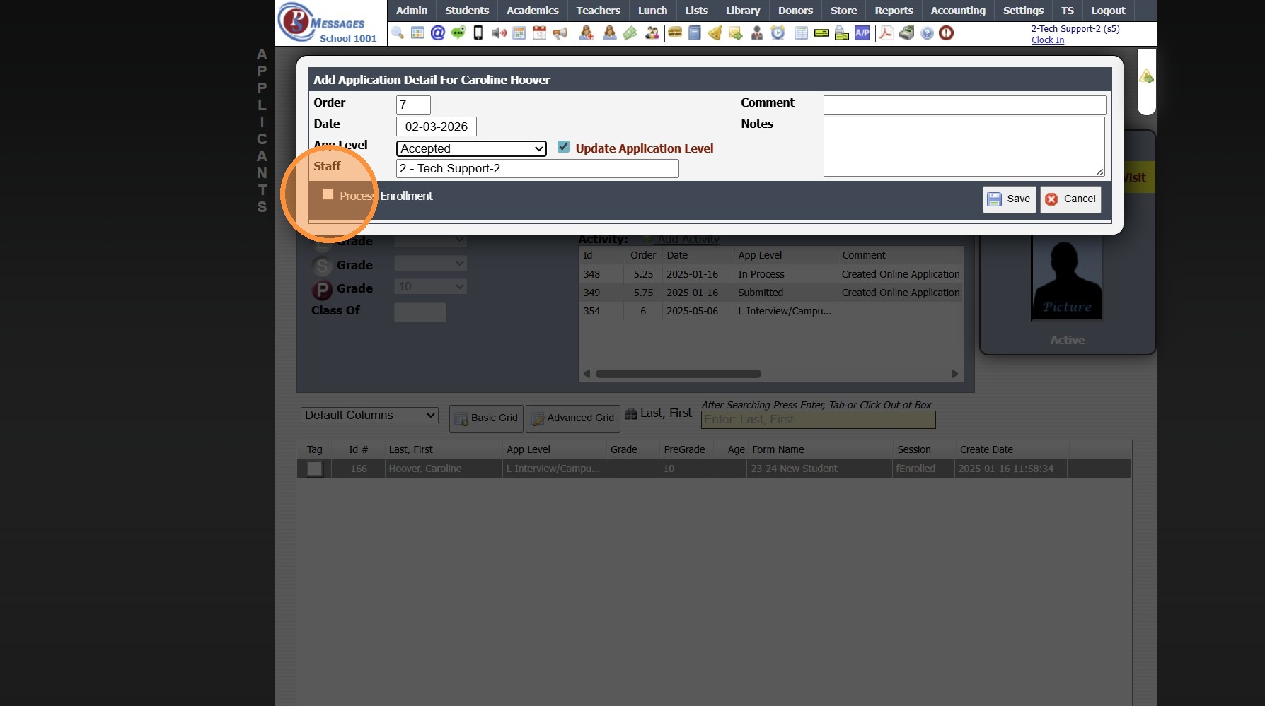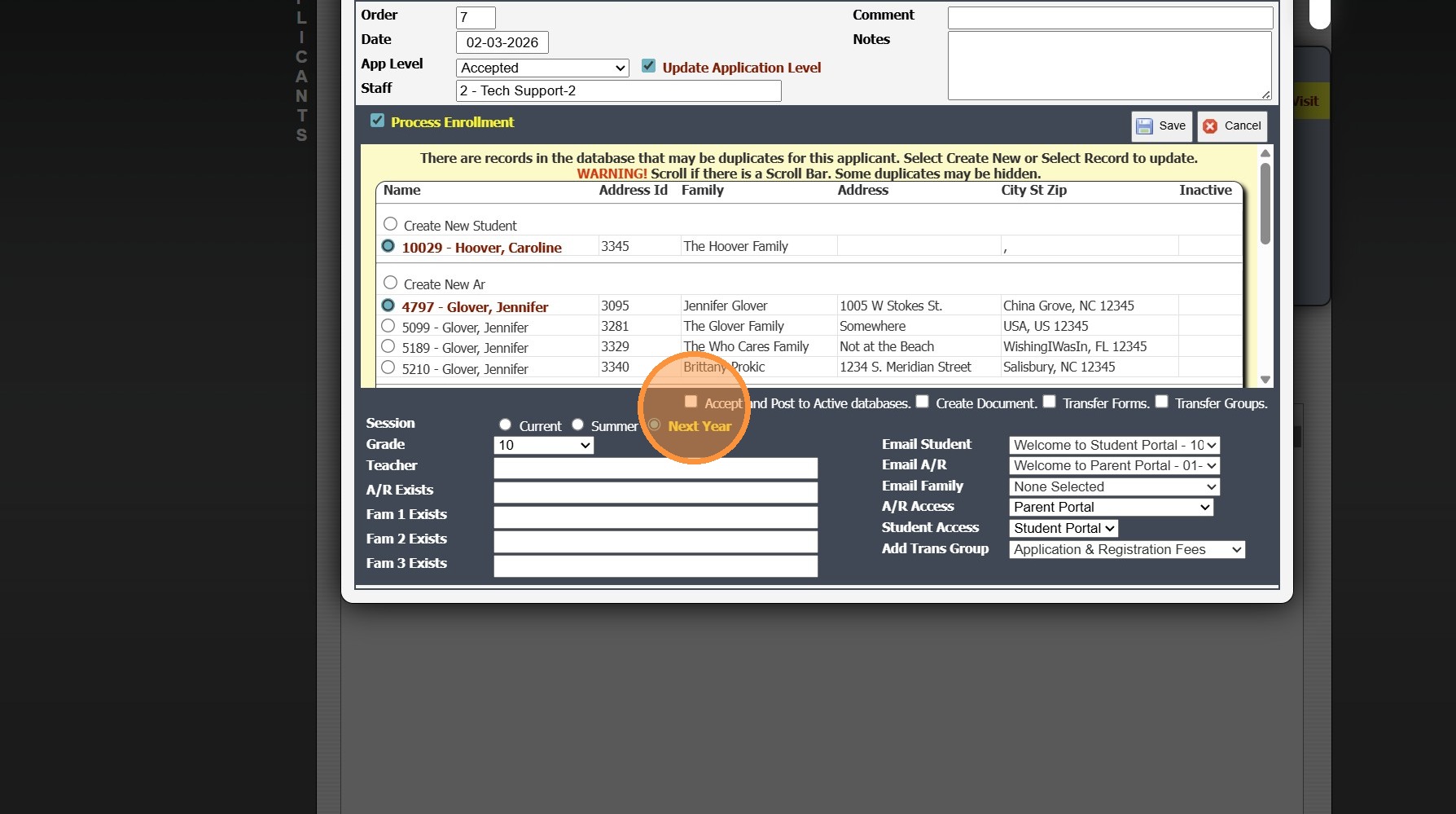 8. Check the "Process Enrollment" Box