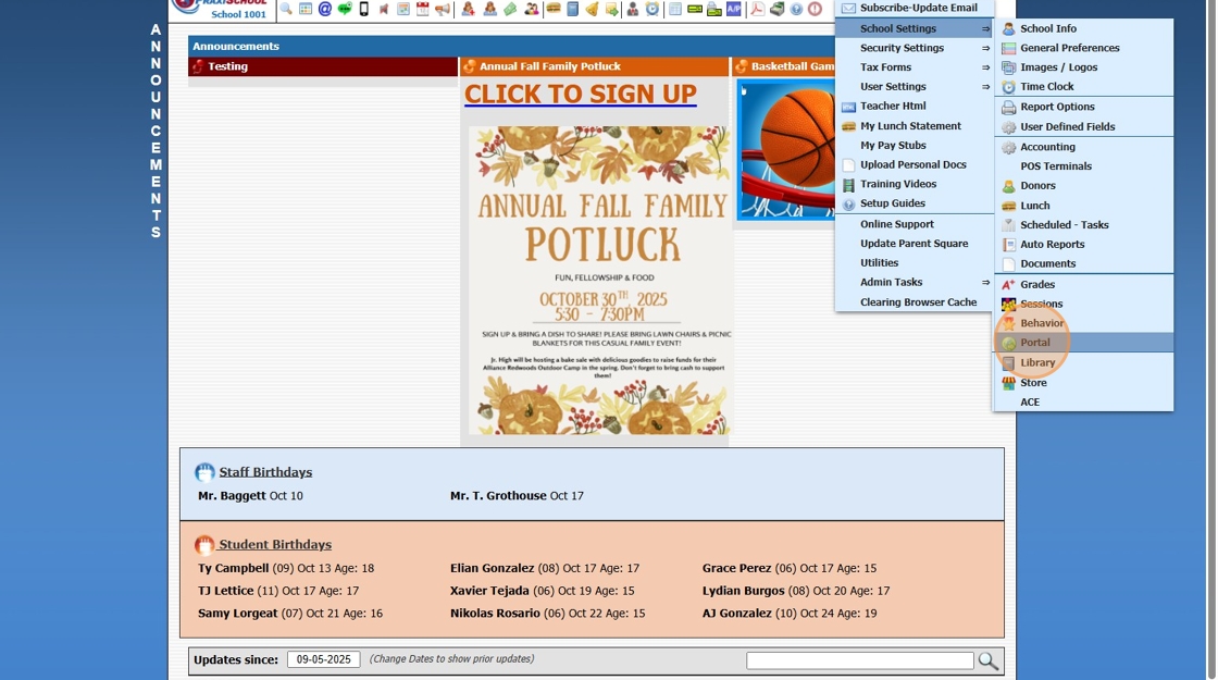 Online Form Types and Portal Options Online Form Types 1. Parent - A/R Portal (Forms for Existing Families, available on Parent Portal) 2. Student Portal (Forms for Existing Students, available on Student Portal) 3. From Your Website (Only new ...