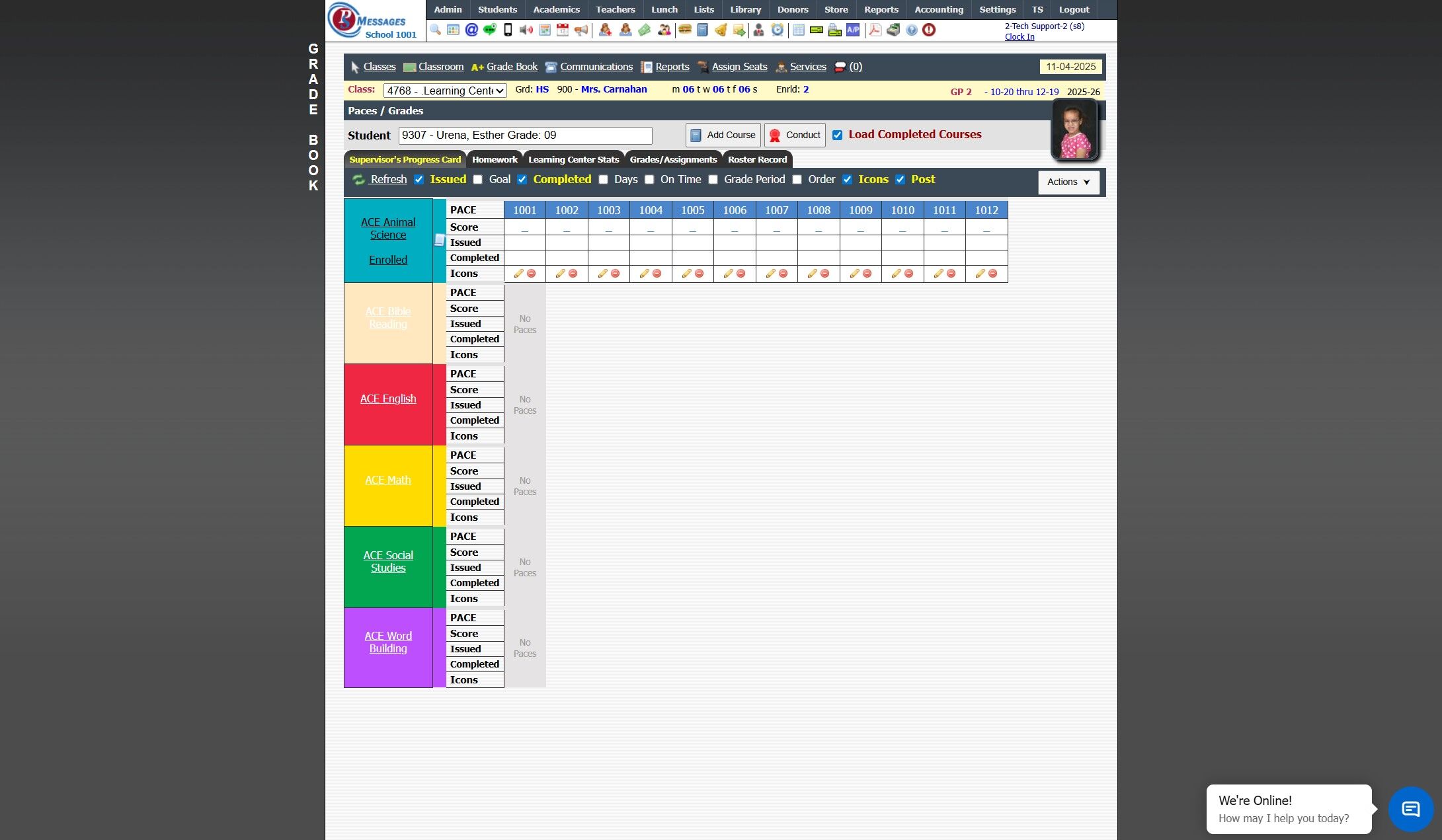 Add ACE Courses & PACES to Students in the Learning Center