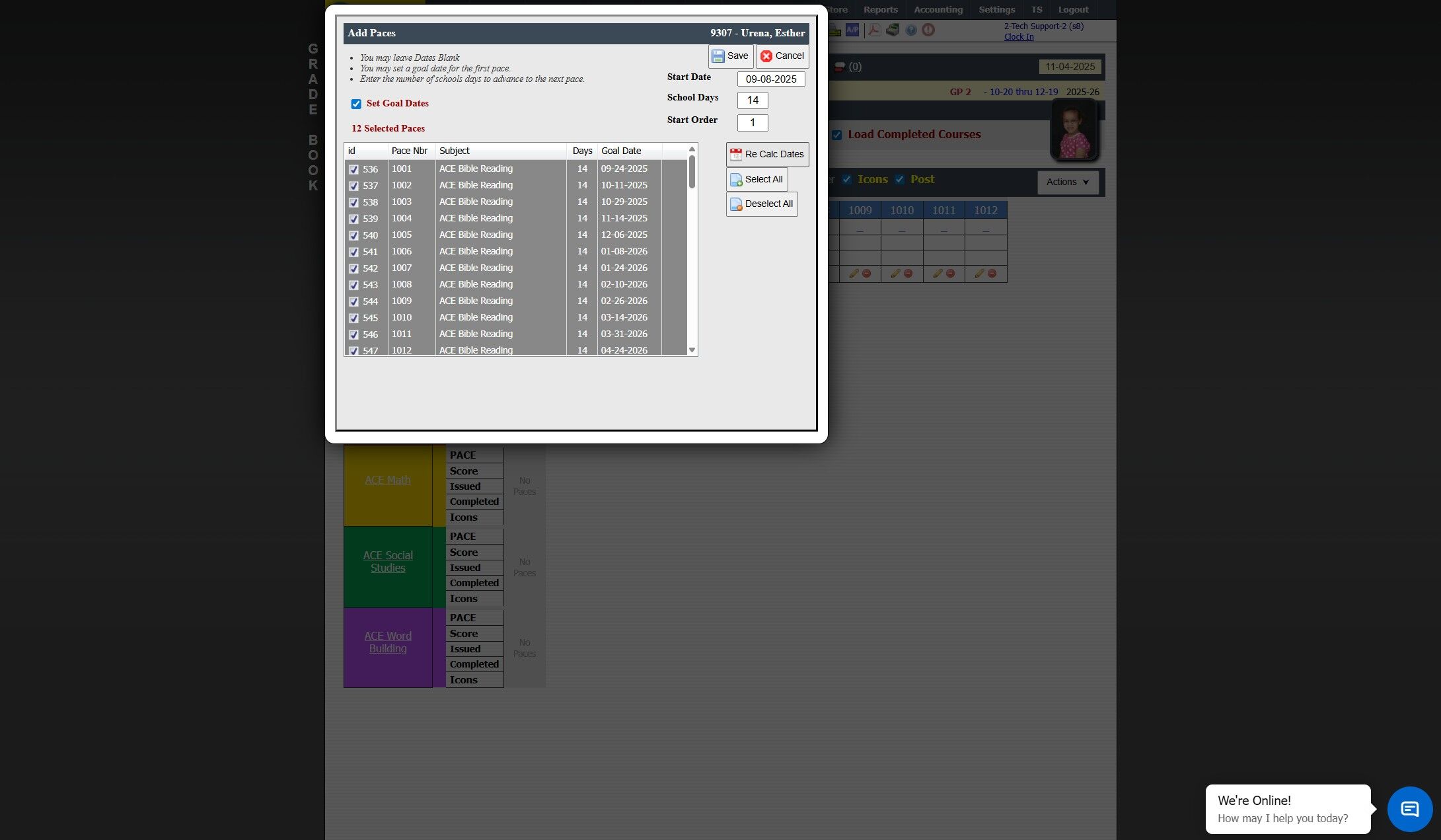 Enroll Students in ACE Courses and Assigning Paces