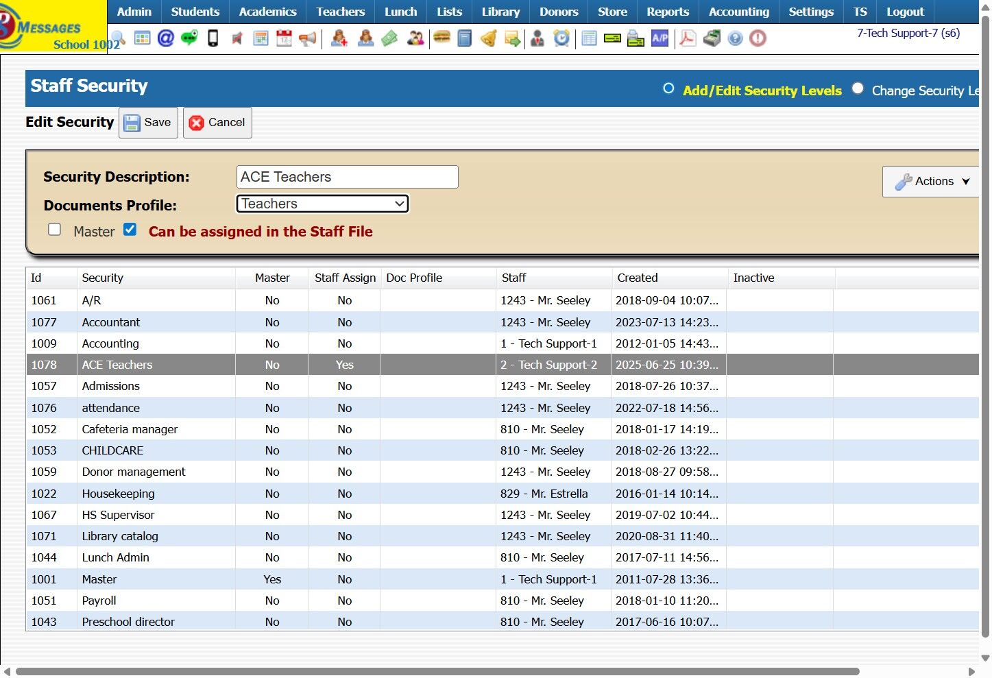 Assigning Staff Security from the Staff File