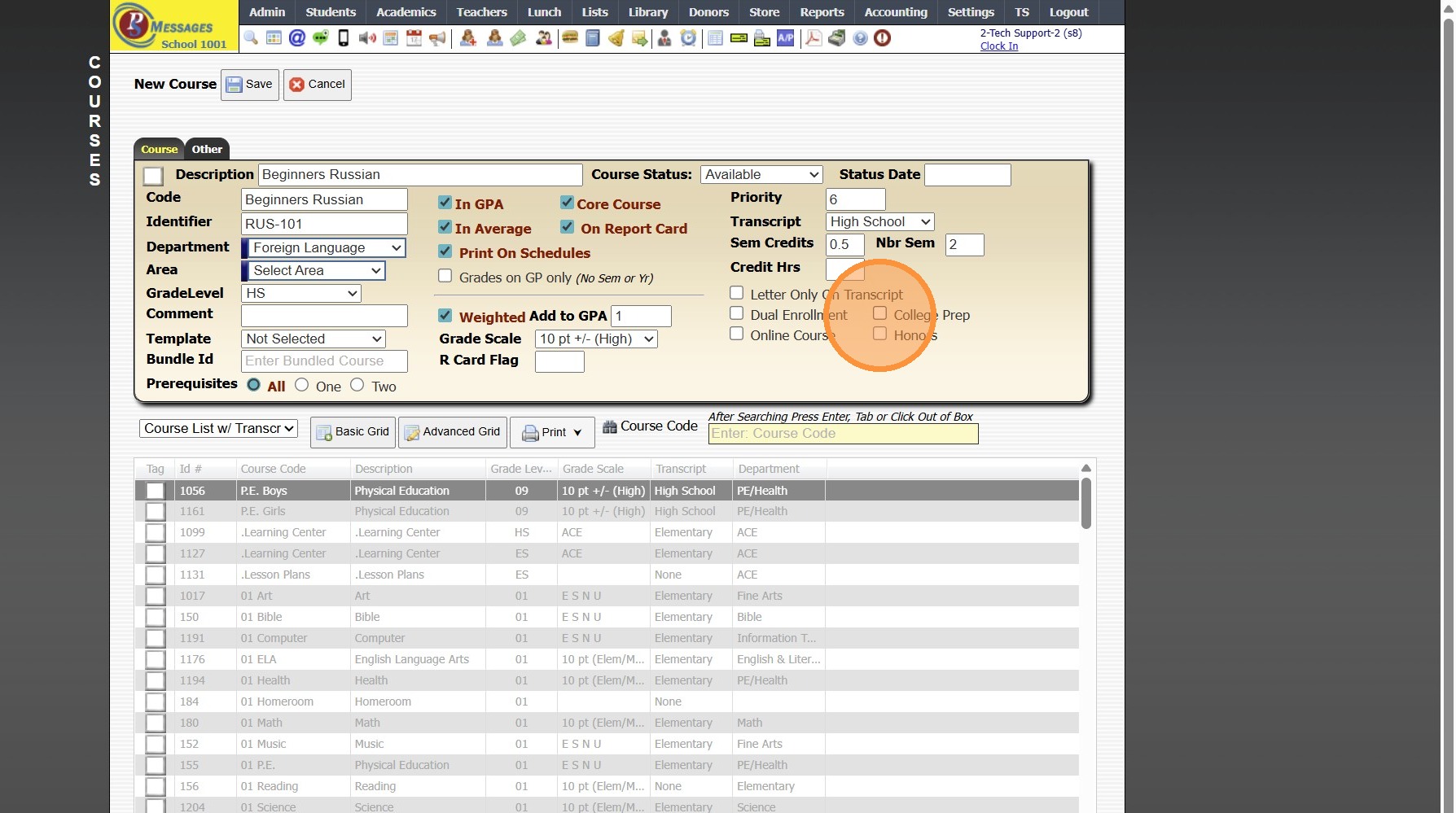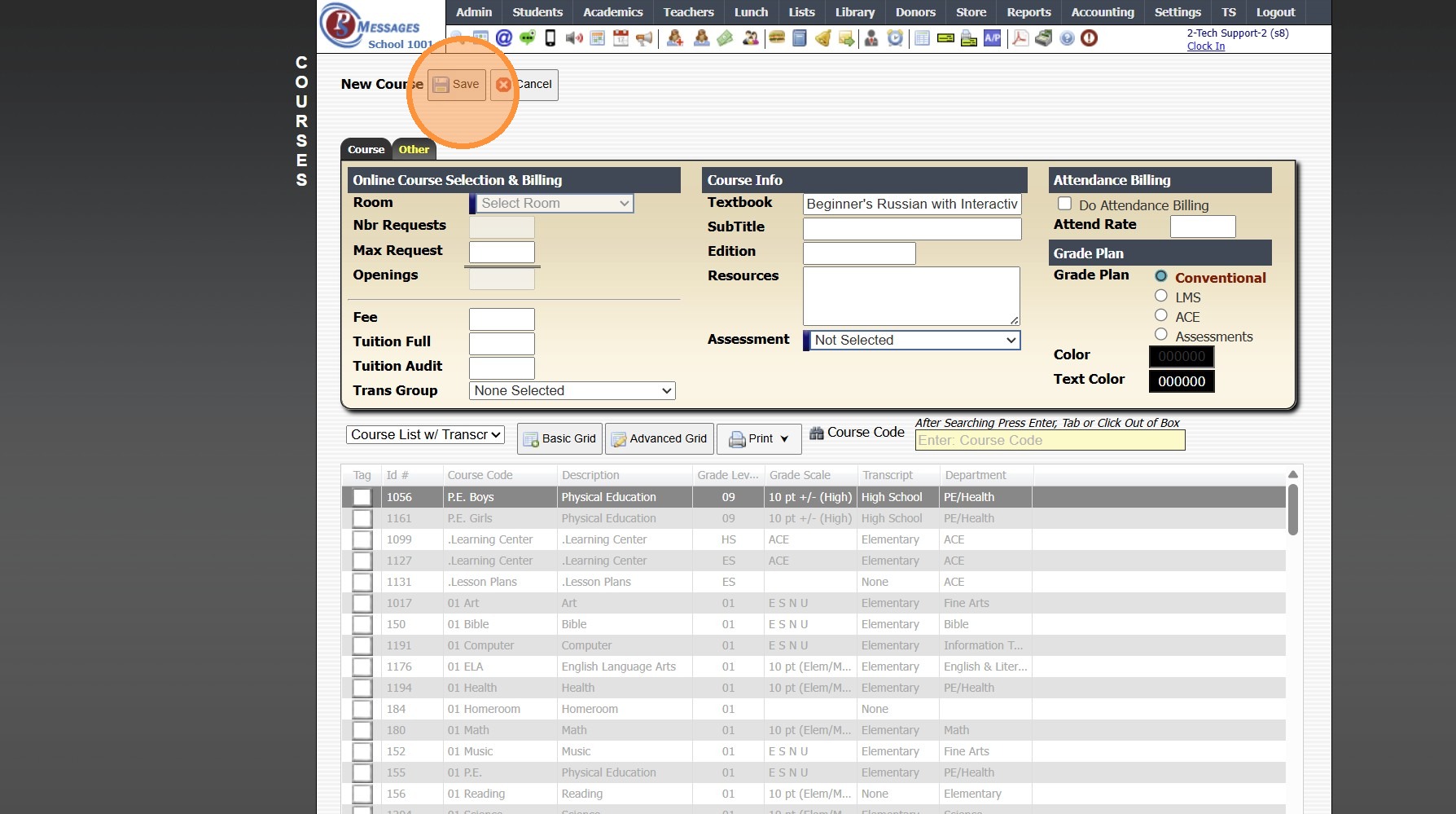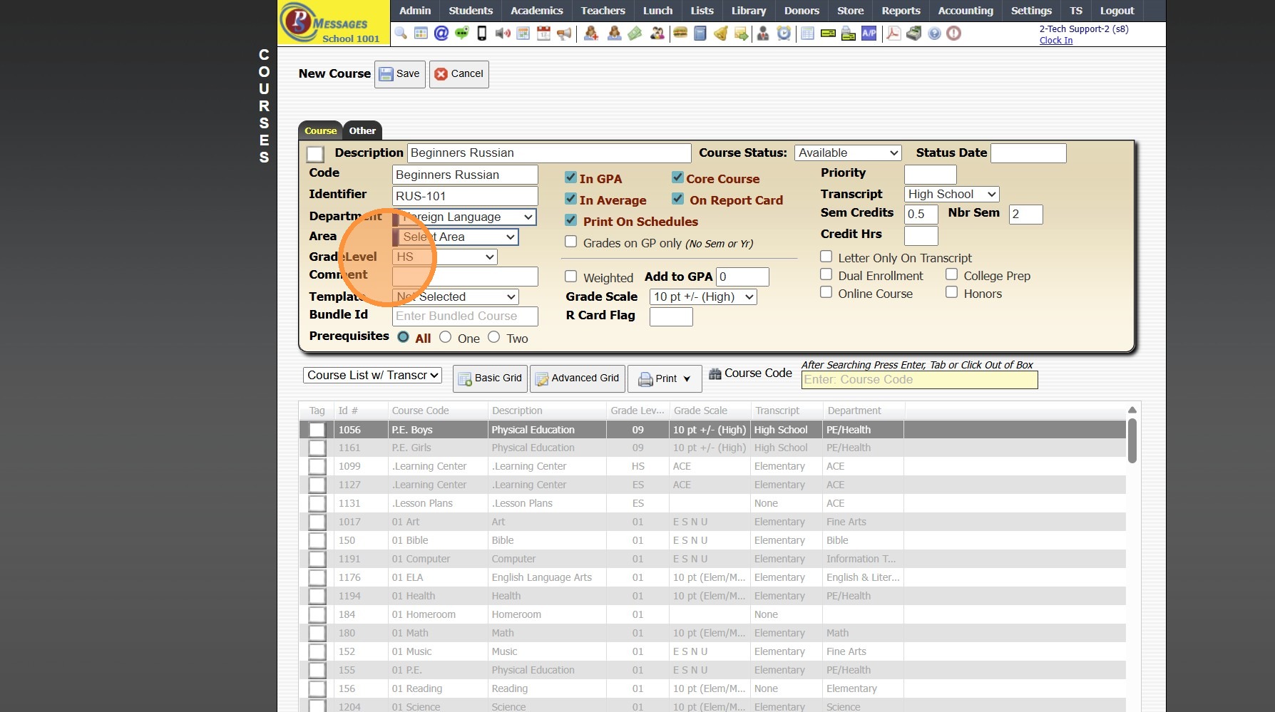 7. Select Grade Level for Course