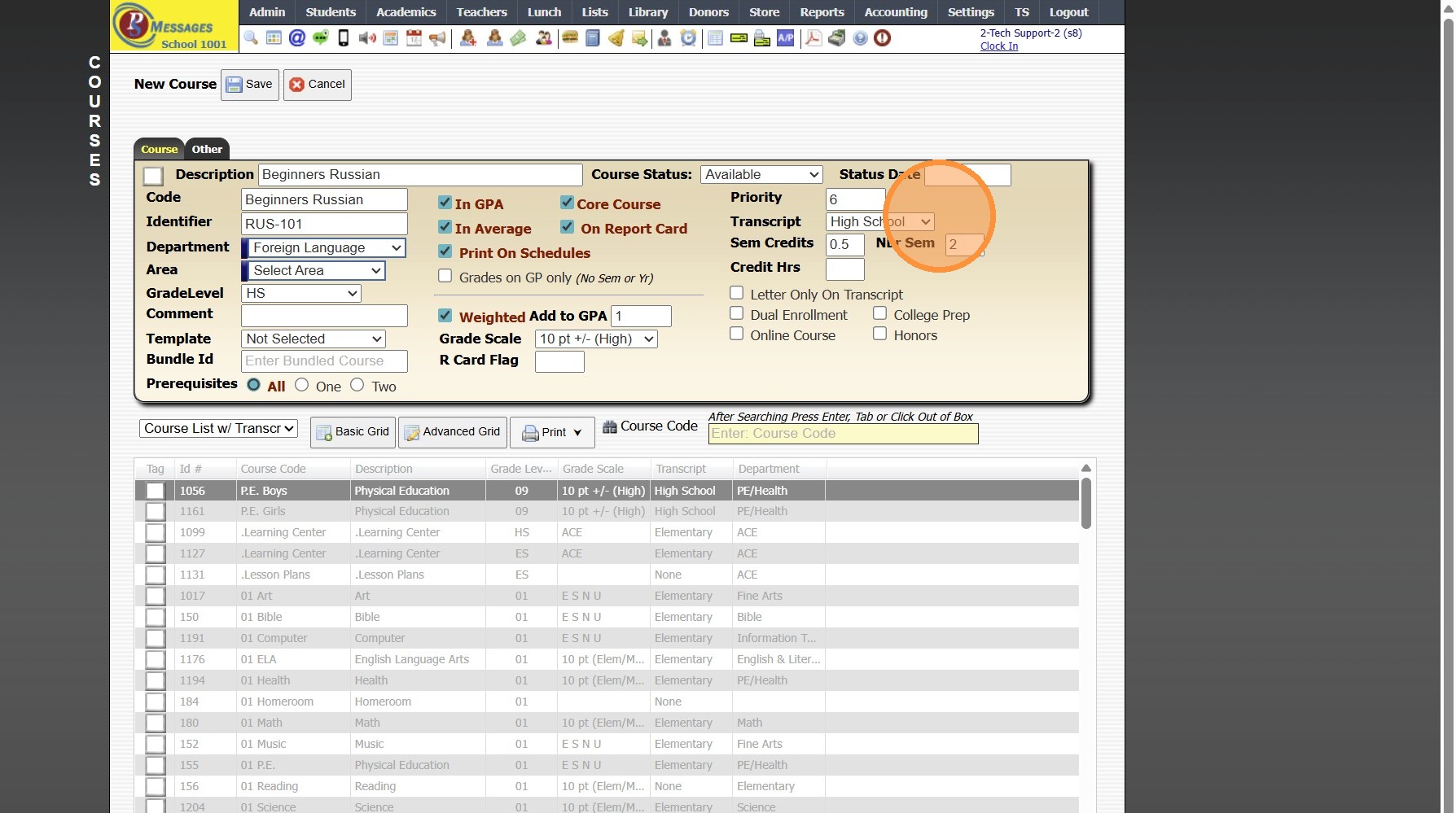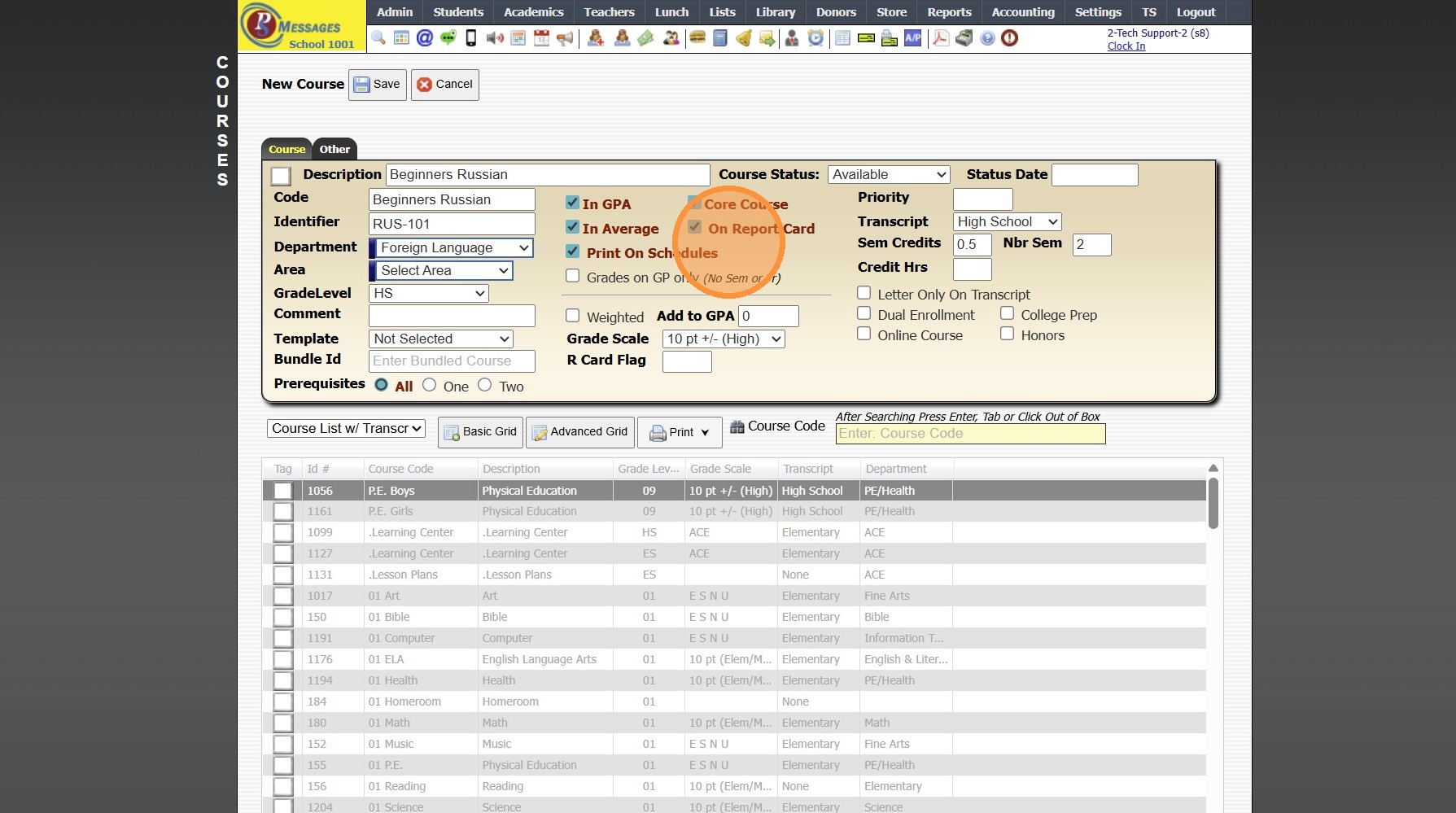 (Setting Priority Numbers Determines the Course Order on the Report Card)