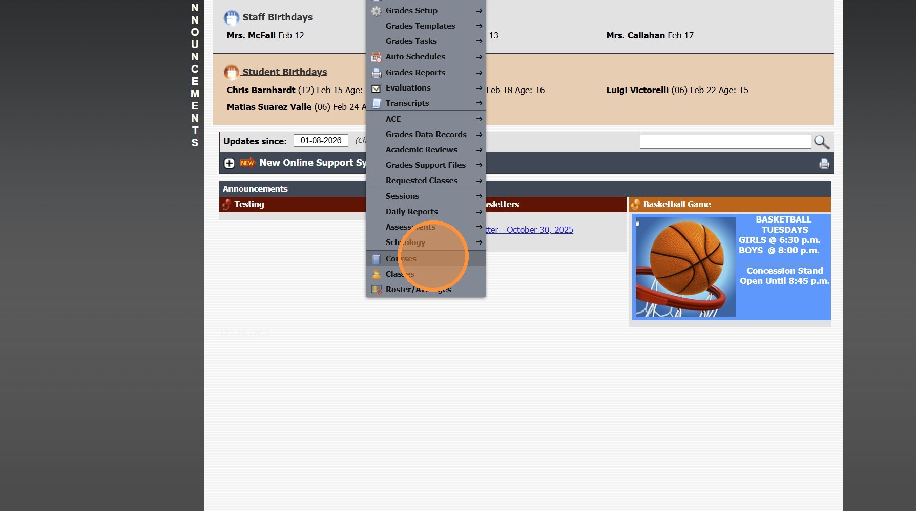 2. Click "Courses"