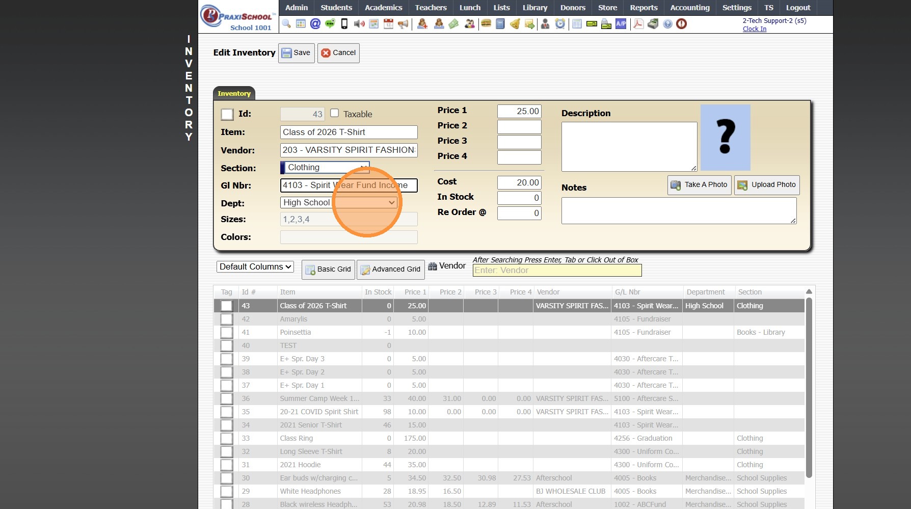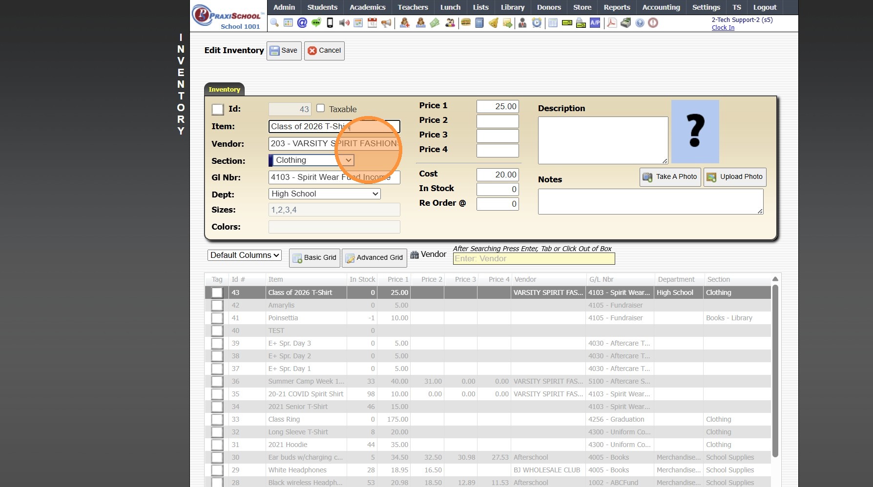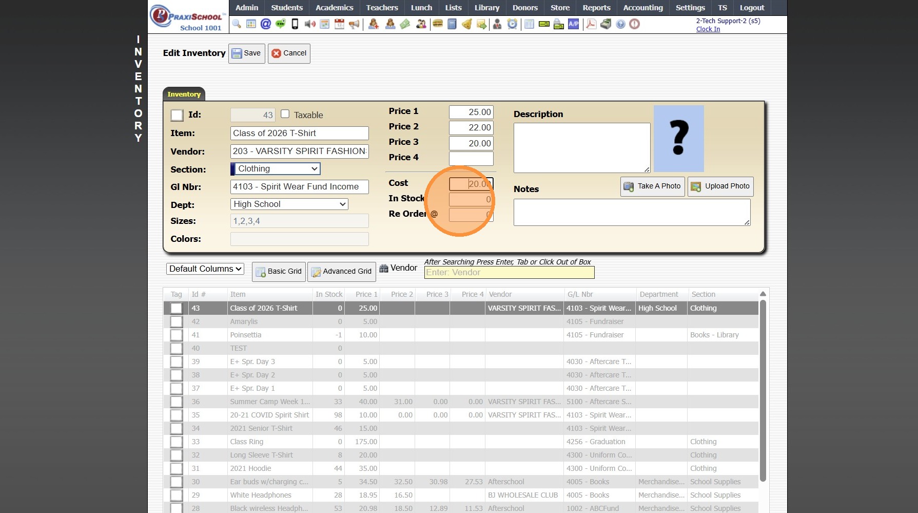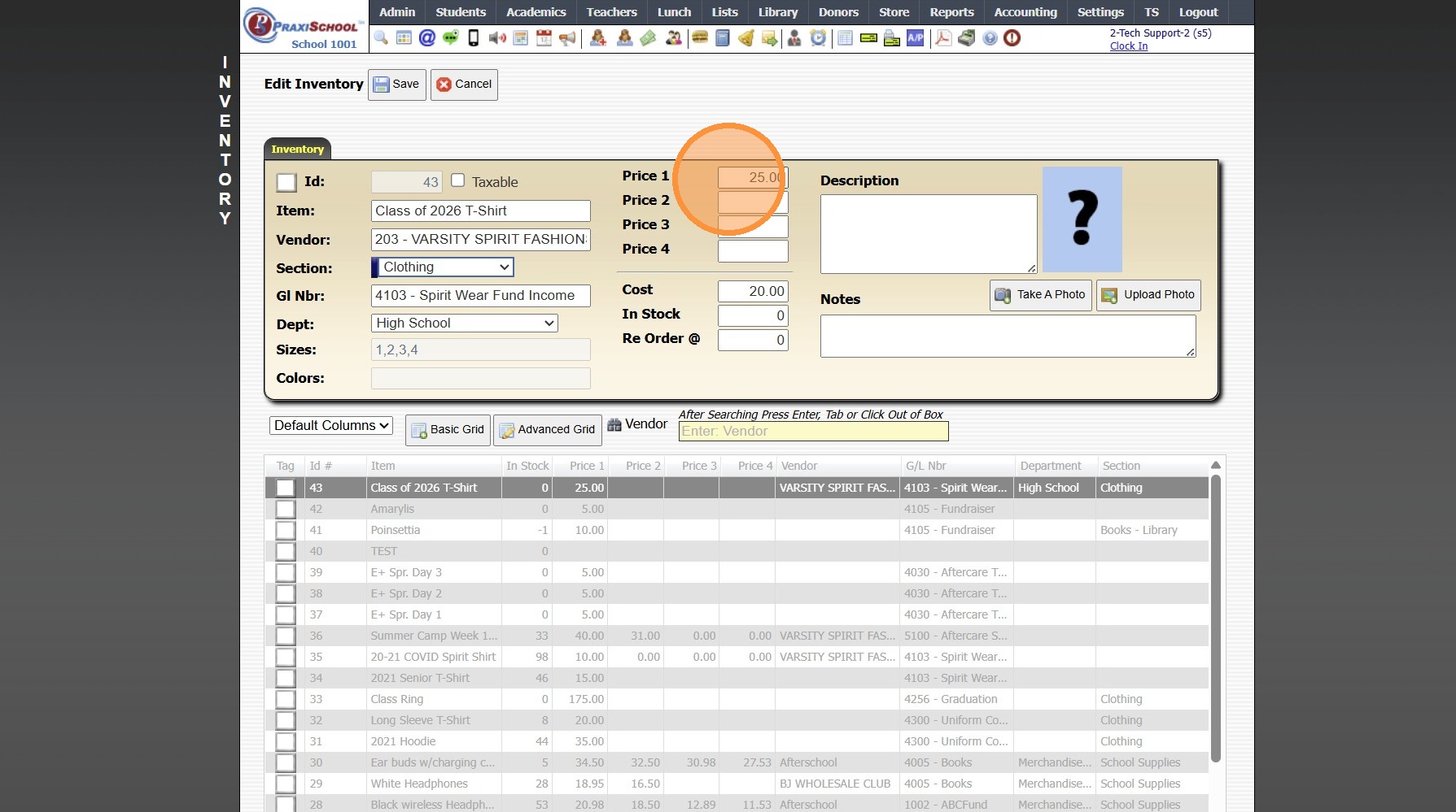 Adding a New School Store Inventory Item