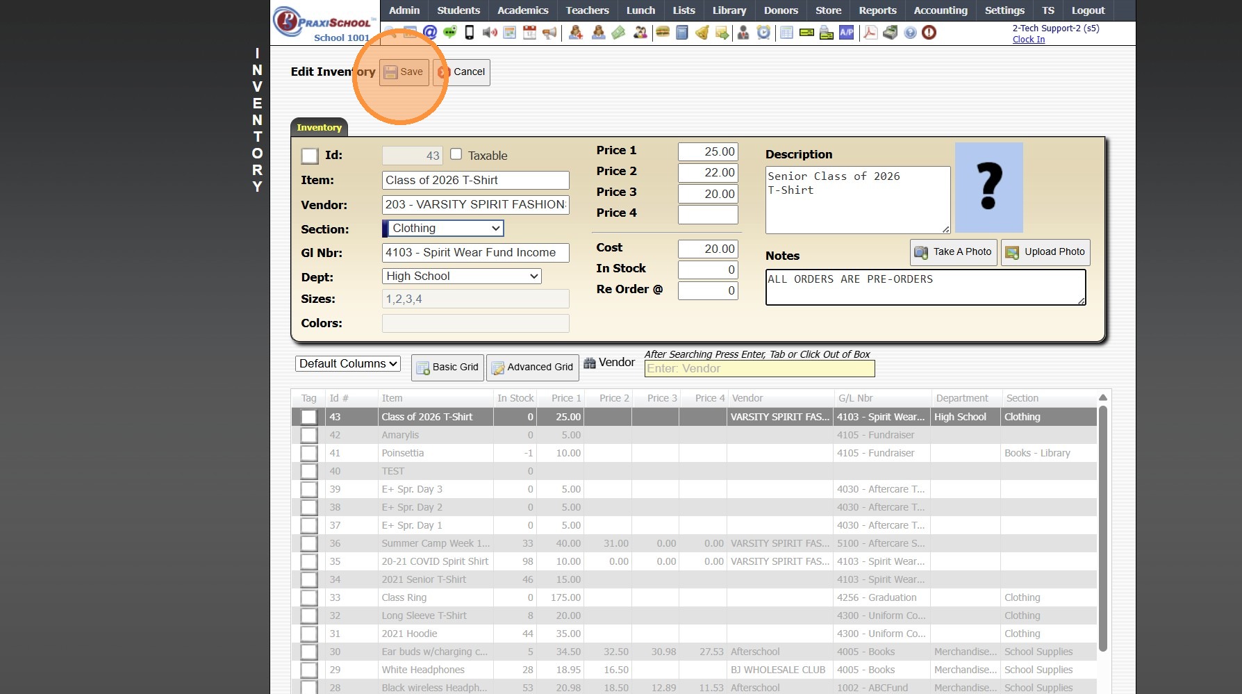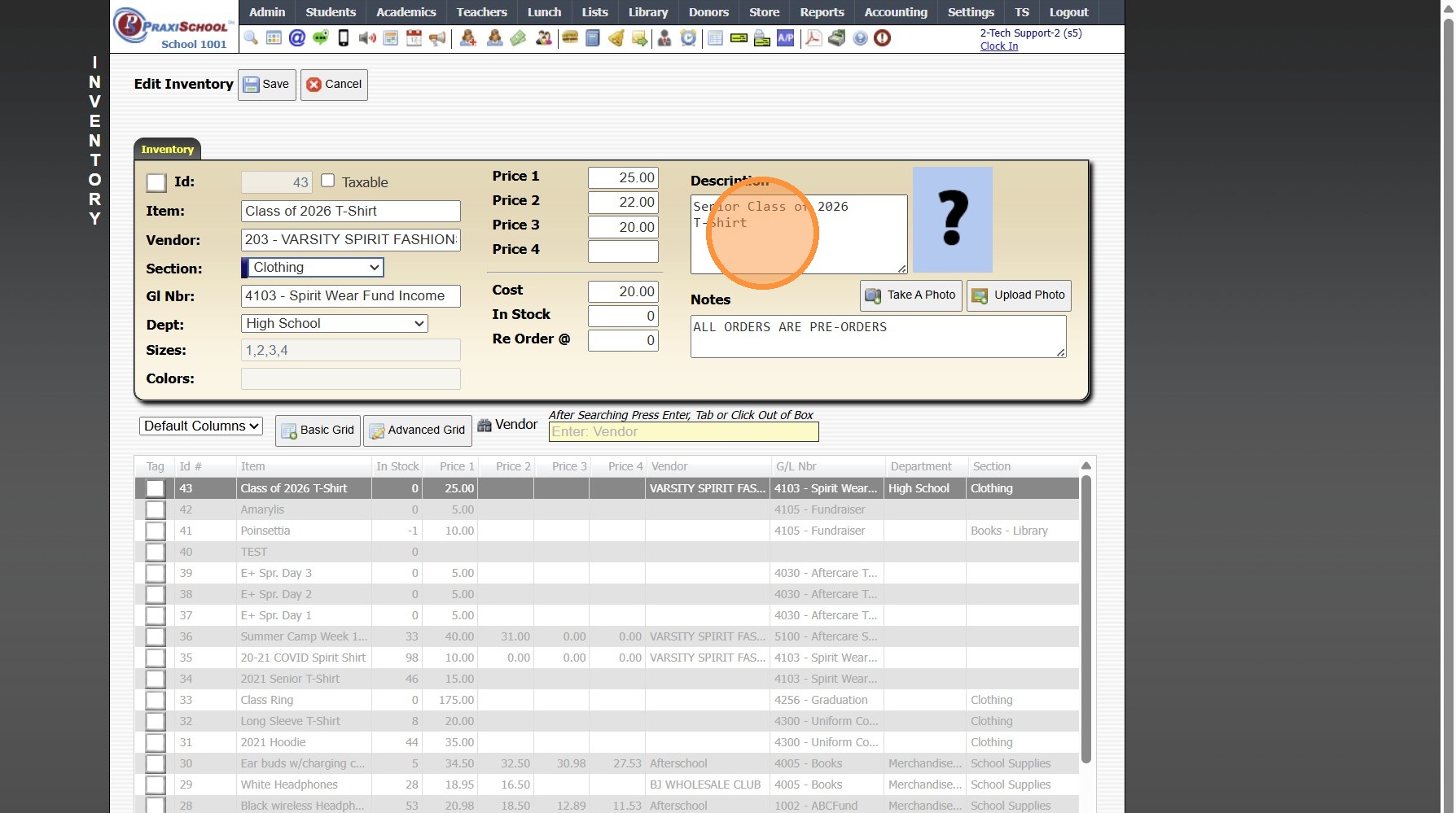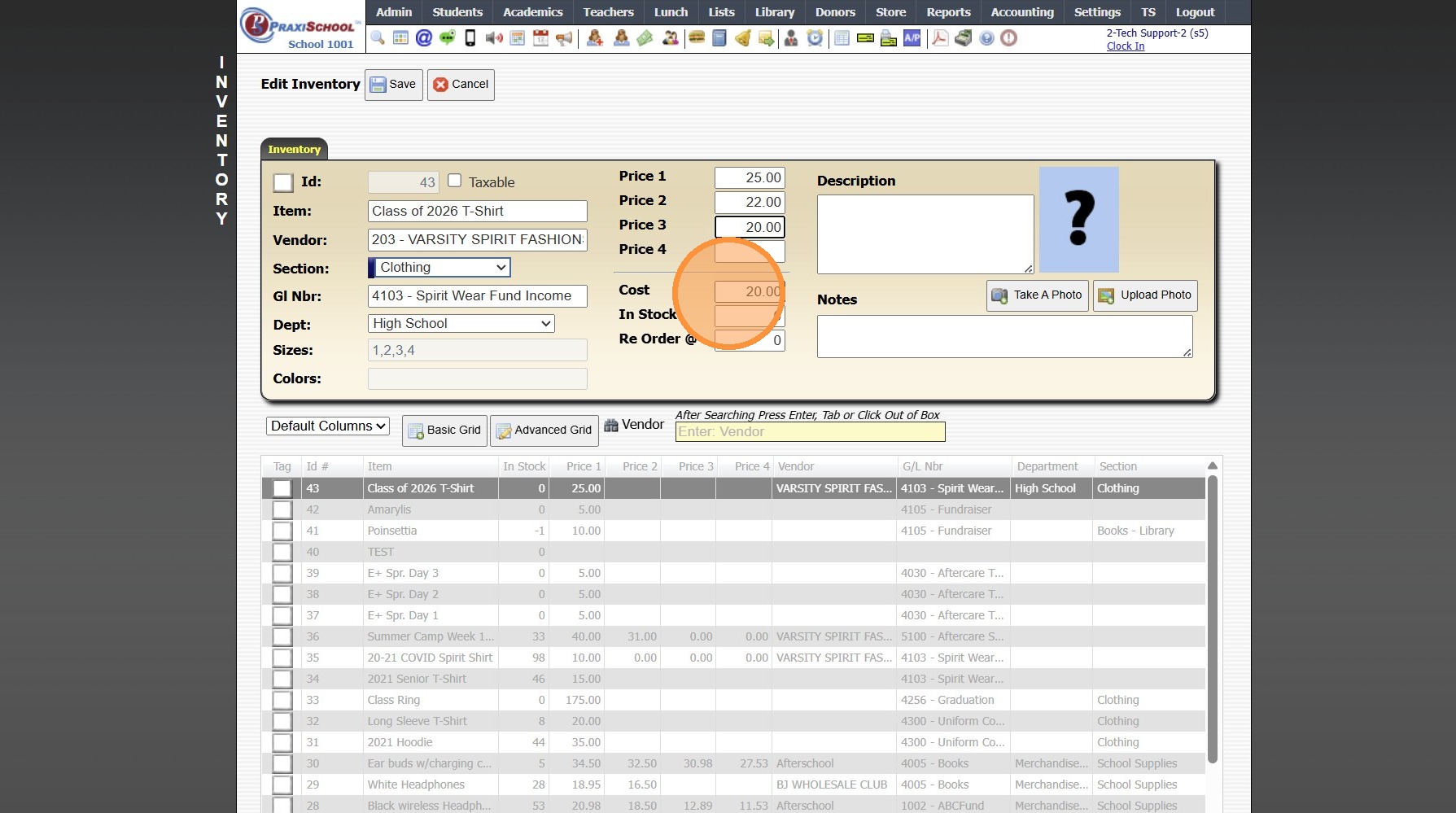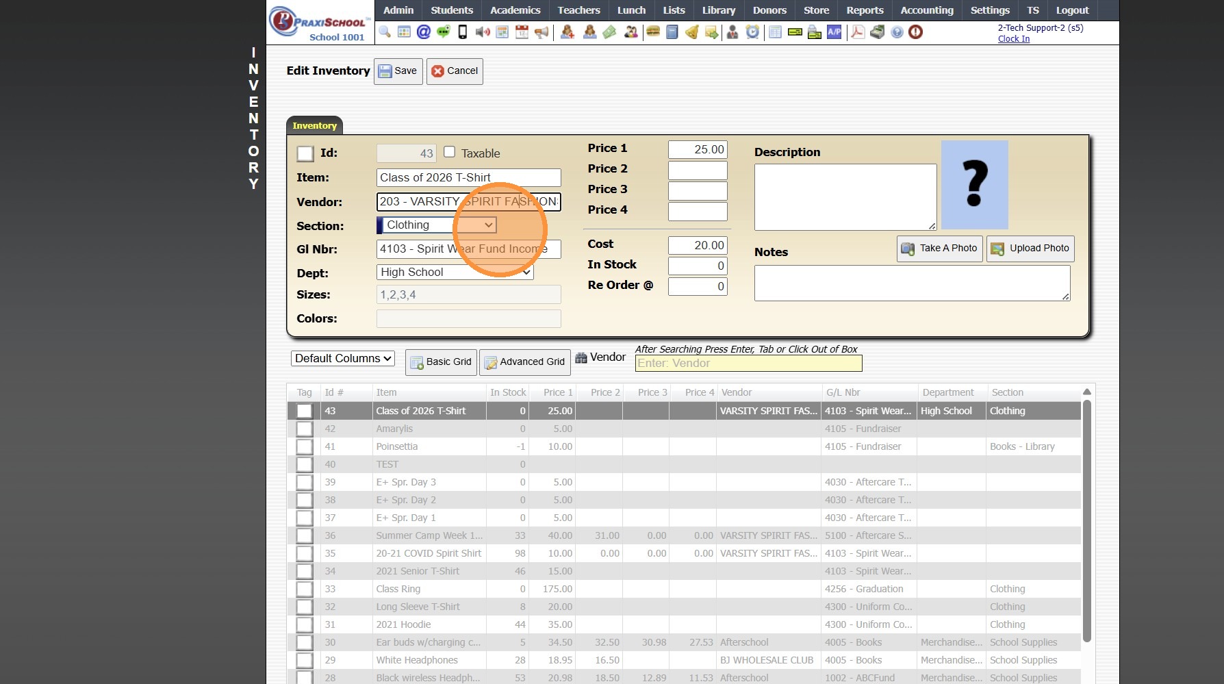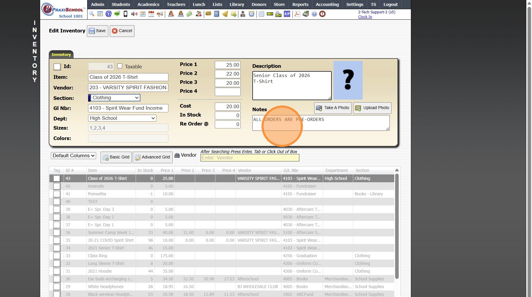 Adding a New School Store Inventory Item