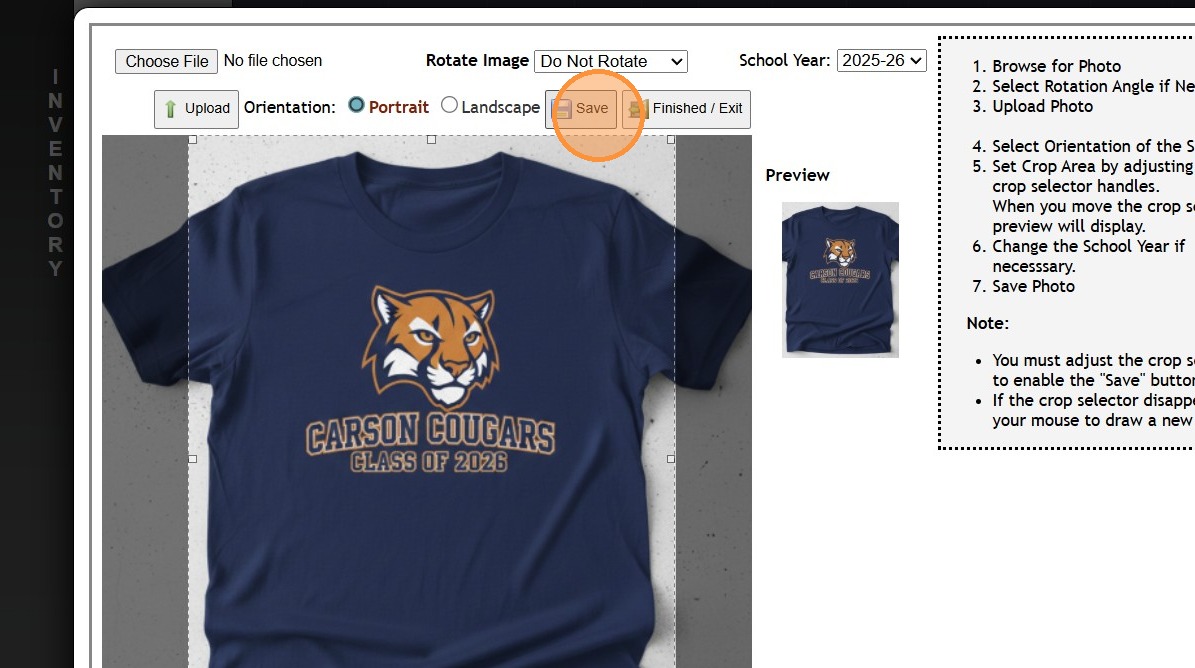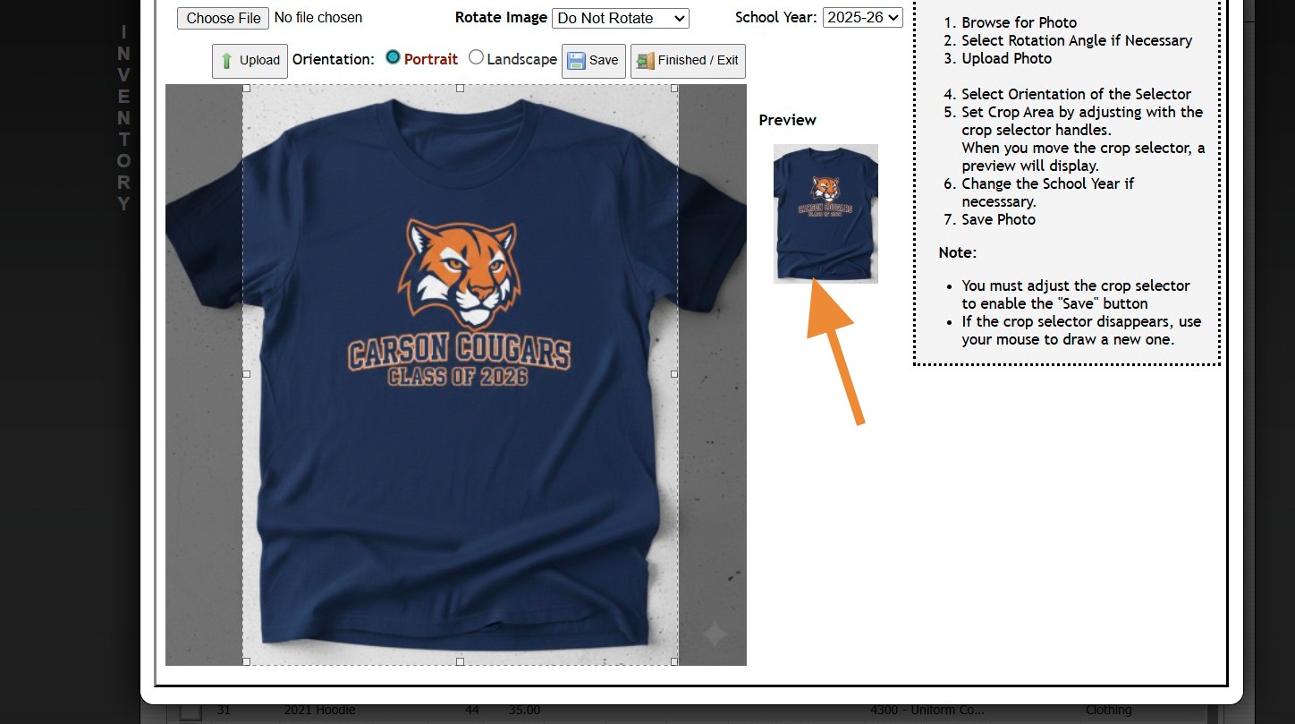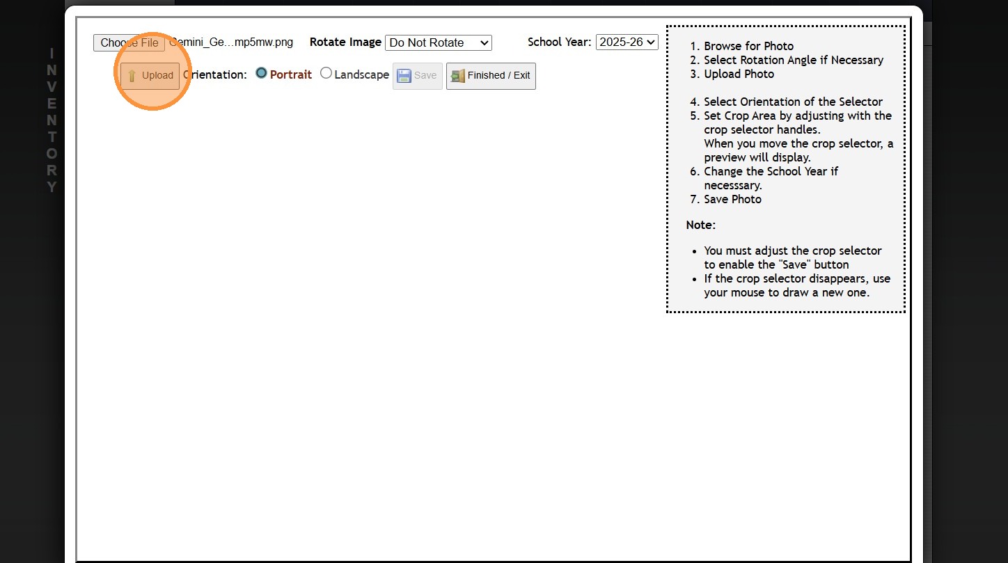 18. Click "Upload Photo" to Add a Picture of Inventory Item