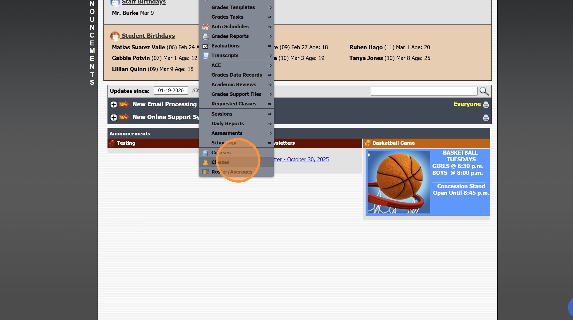 Viewing All Teacher's Classes