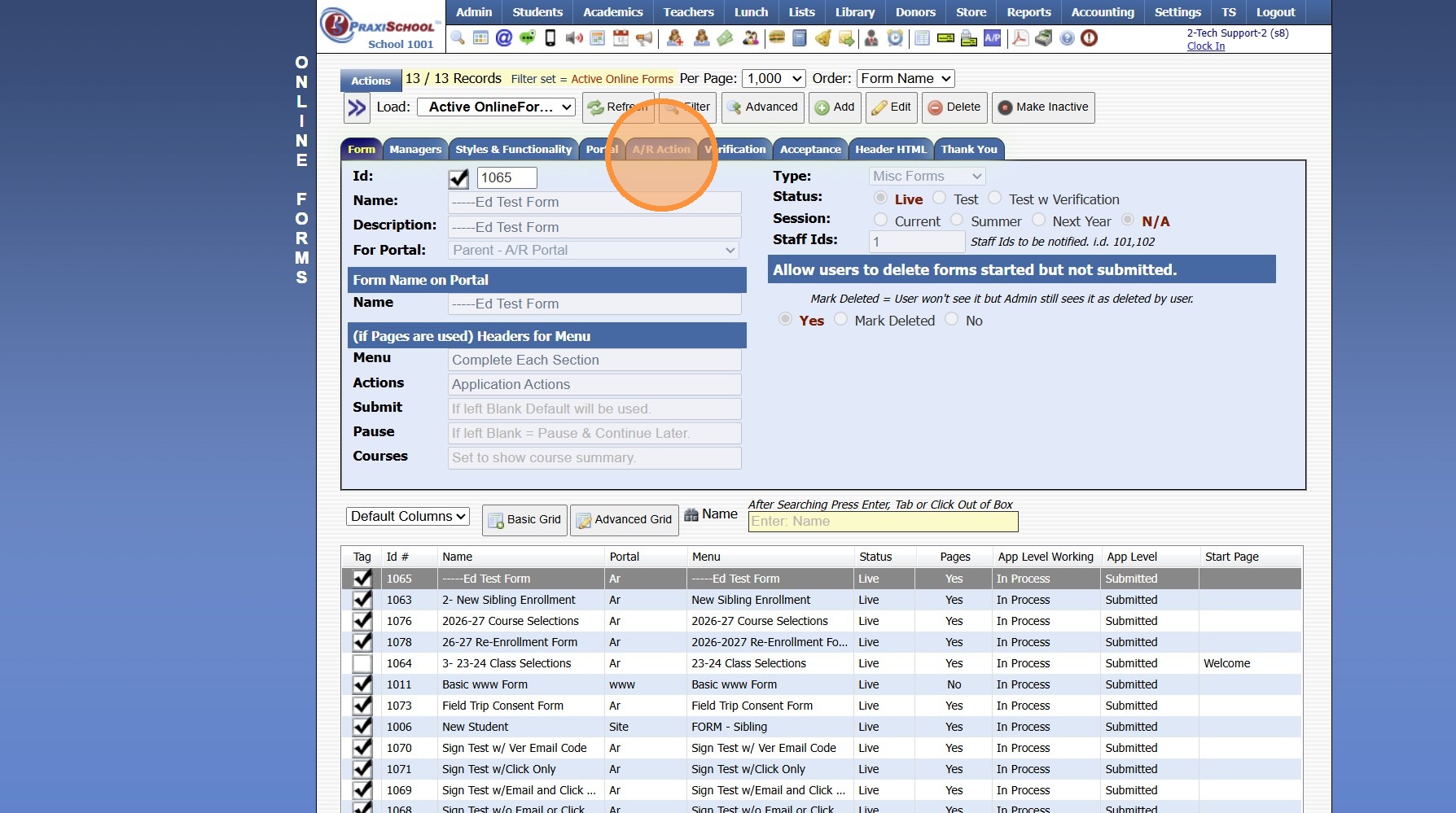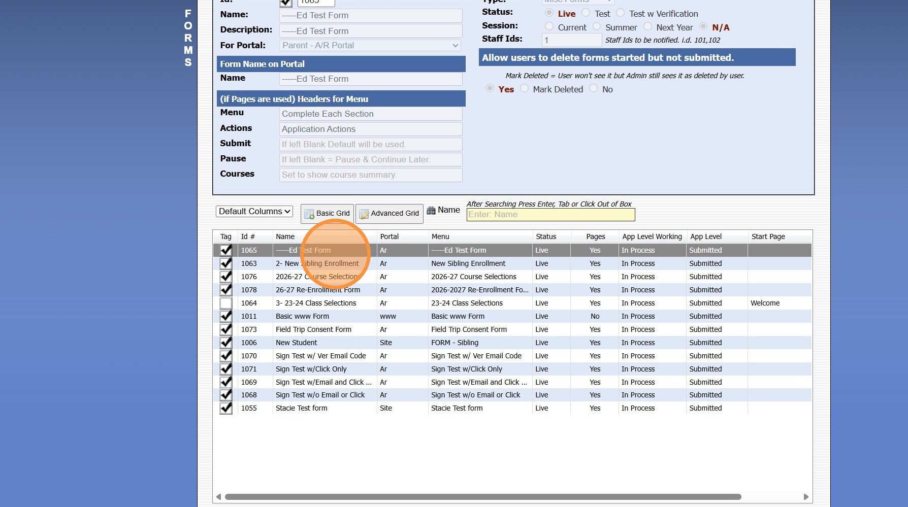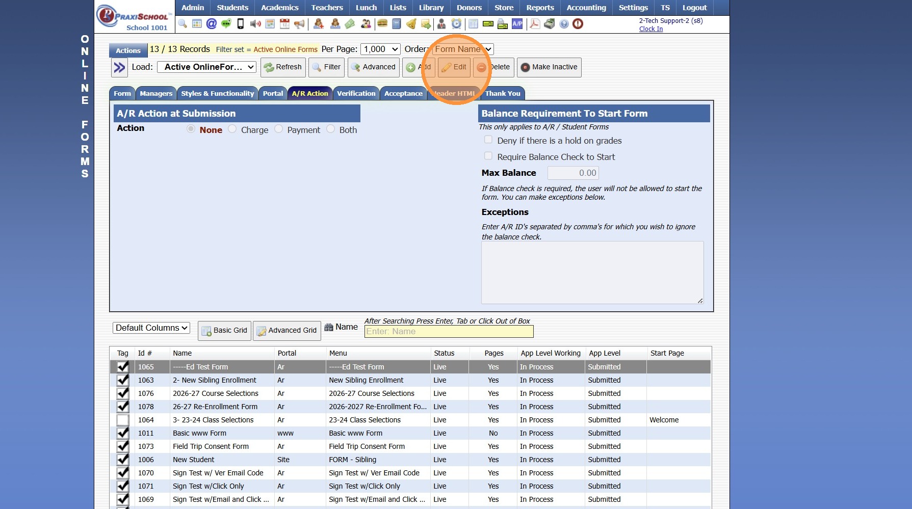 1. Navigate to Admin > Online Forms > Forms.
