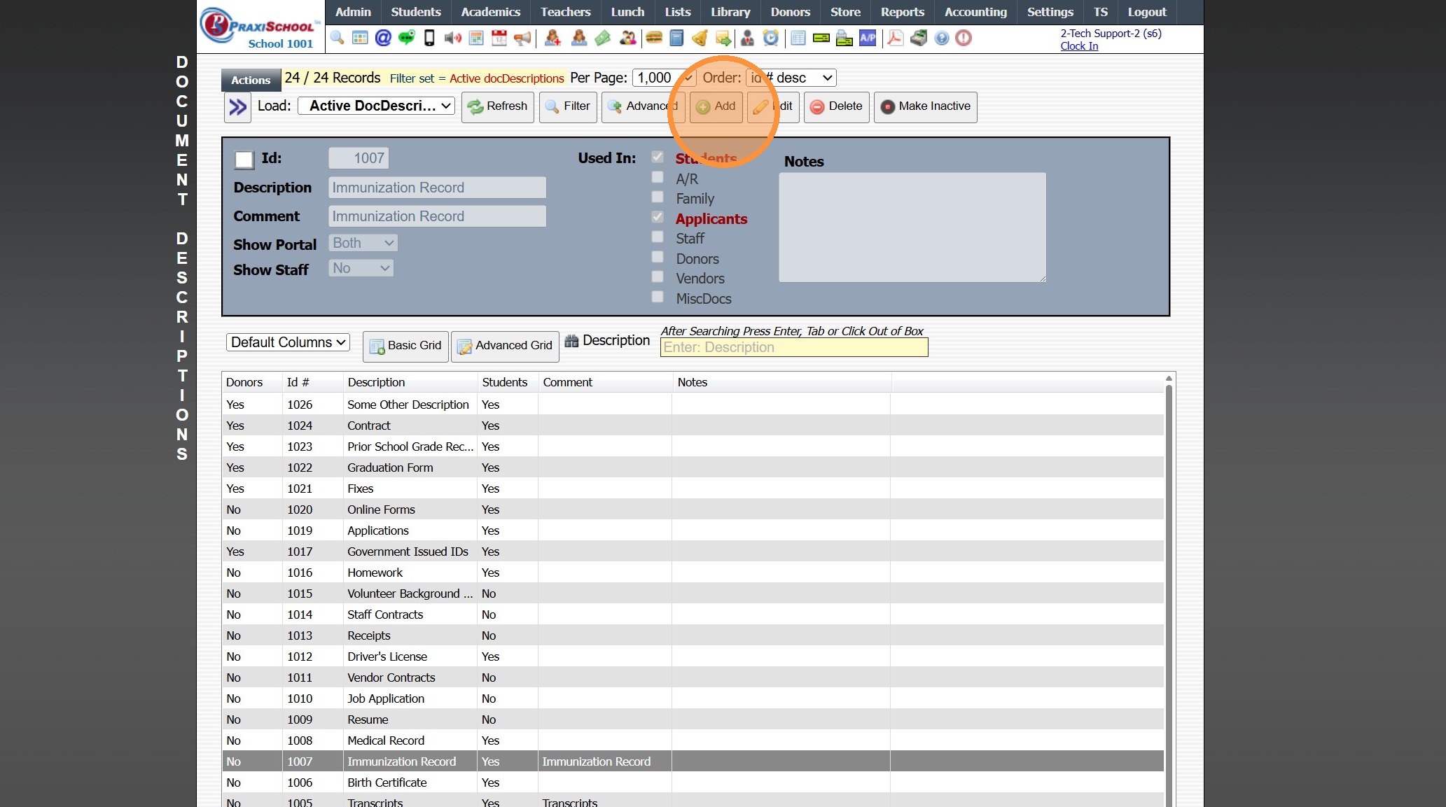 1. Click "Admin" 2. Click "Manage Document" 3. Click "Doc Folders" 4. Click "Add" 5. Enter Description 6. Click "Save" 1000.4.5