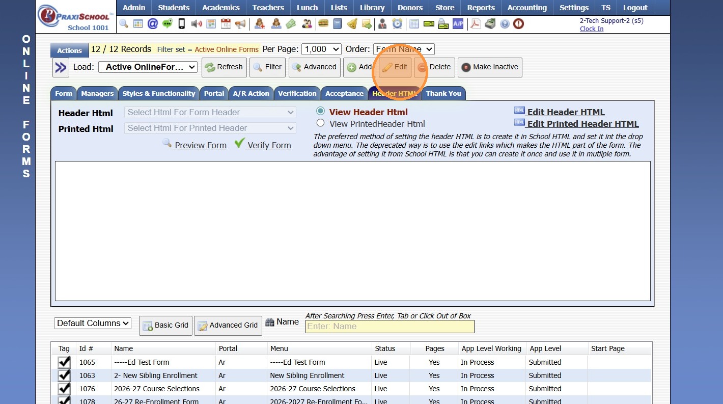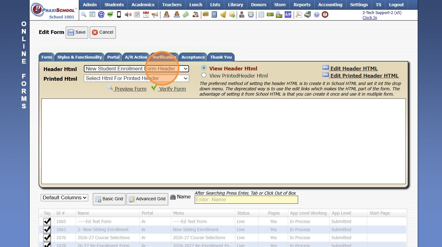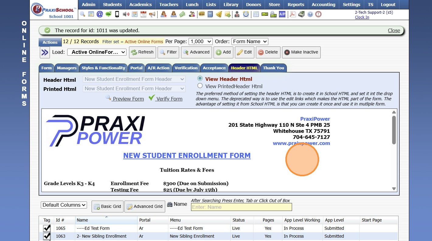 Adding School HTML for Online Forms