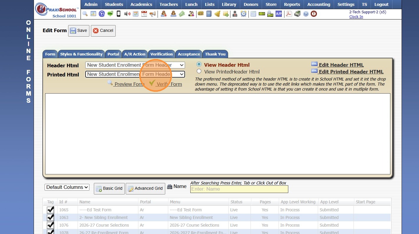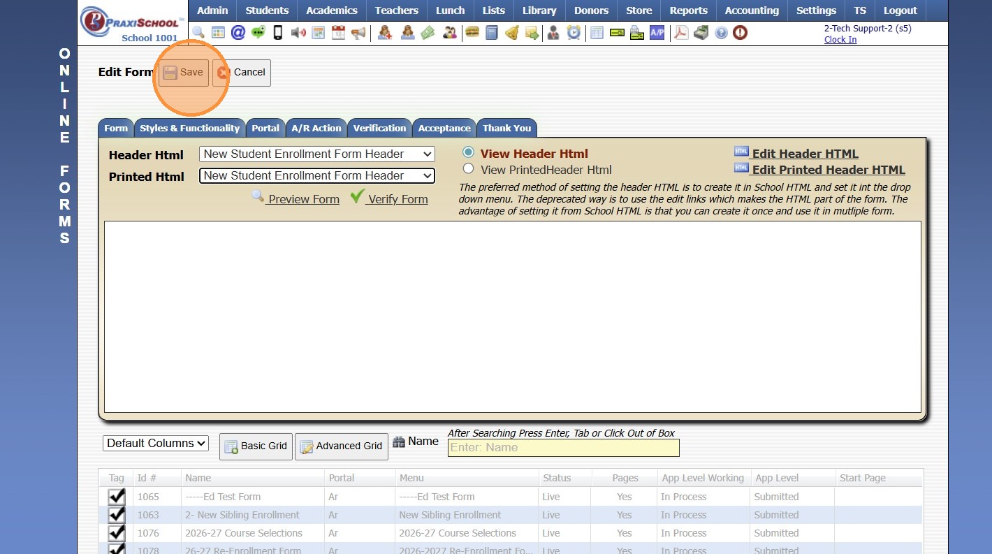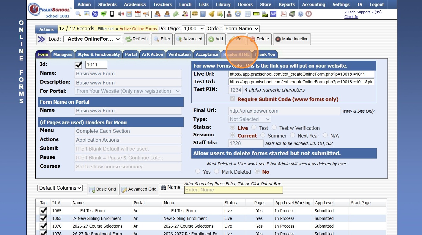 Adding School HTML for Online Forms