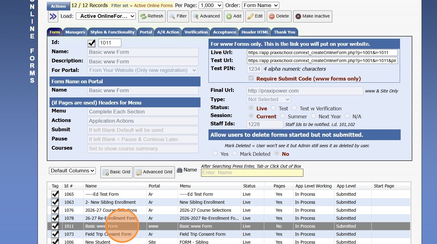 Viewing Active & Inactive Online Forms