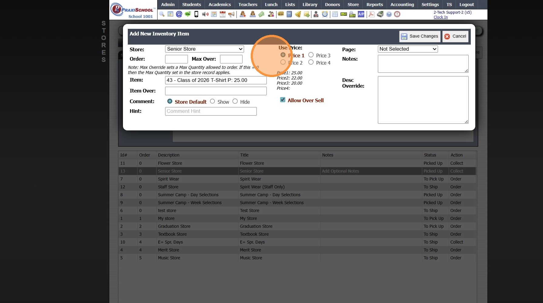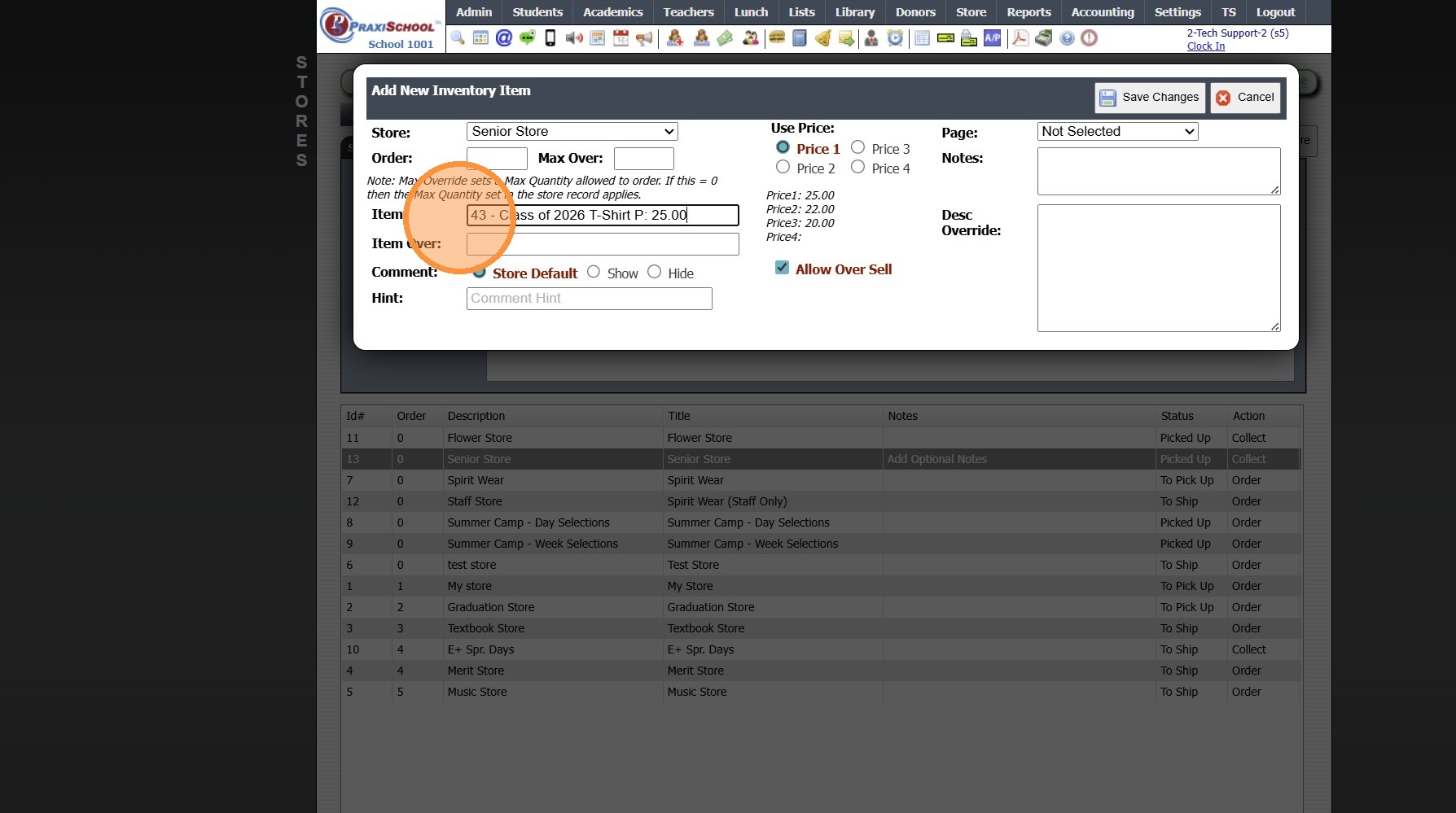 (Max Quantity for Individual Inventory Items can be Set in Max Over Field)