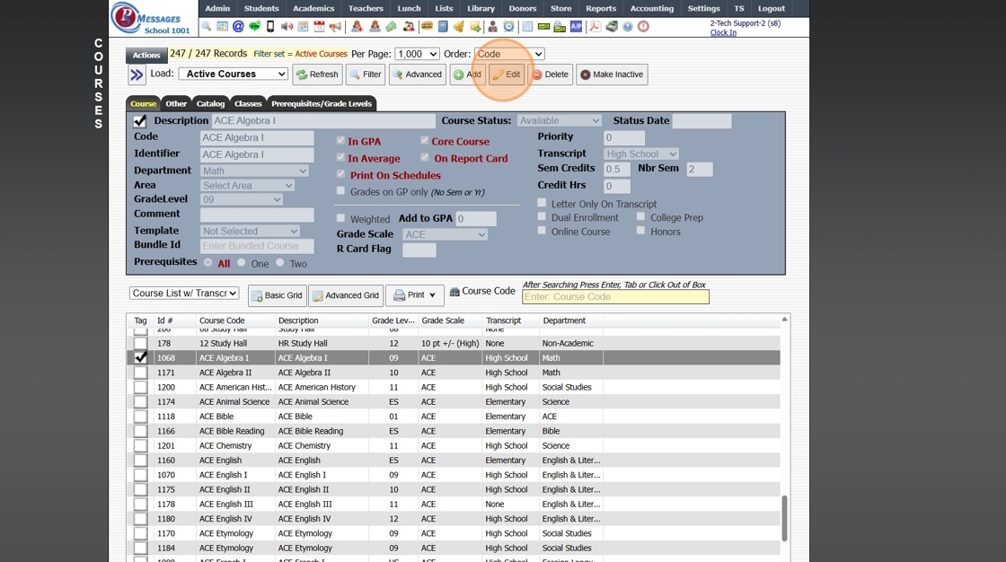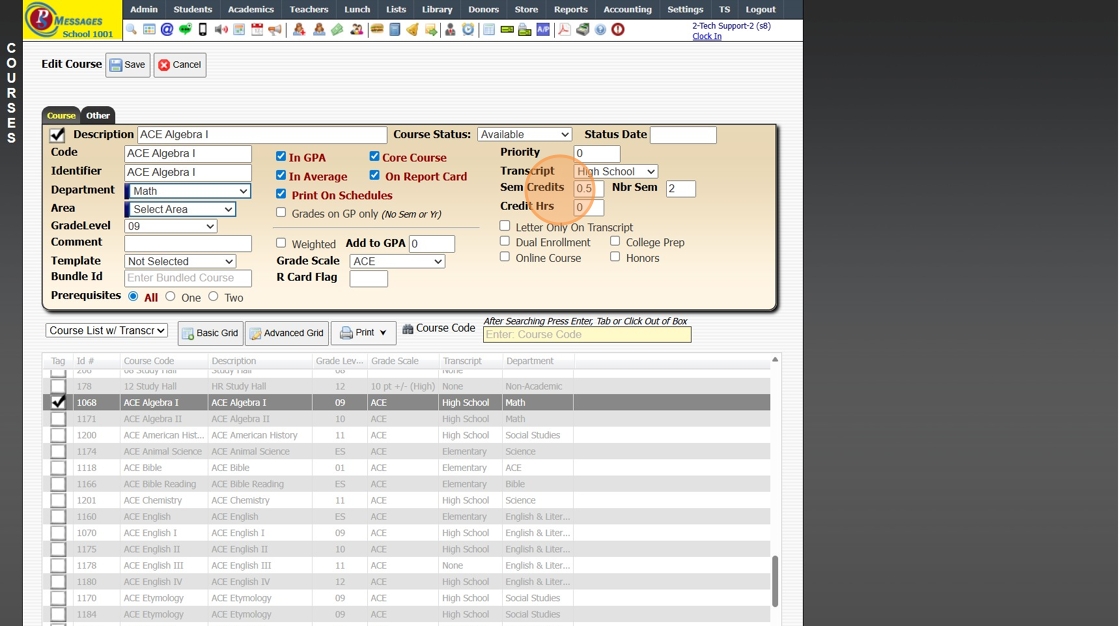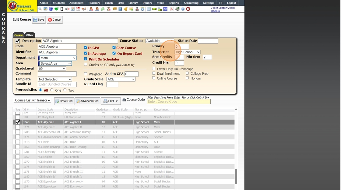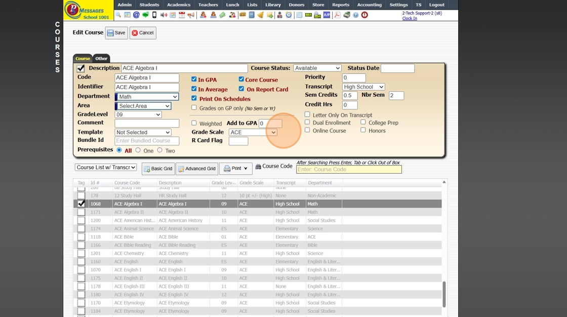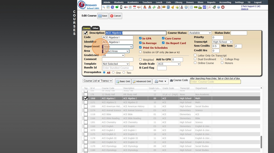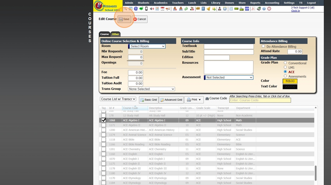Tip: ACE Courses are Pre-Loaded into the Course File. Additional Courses or Conventional Courses can be added if necessary.