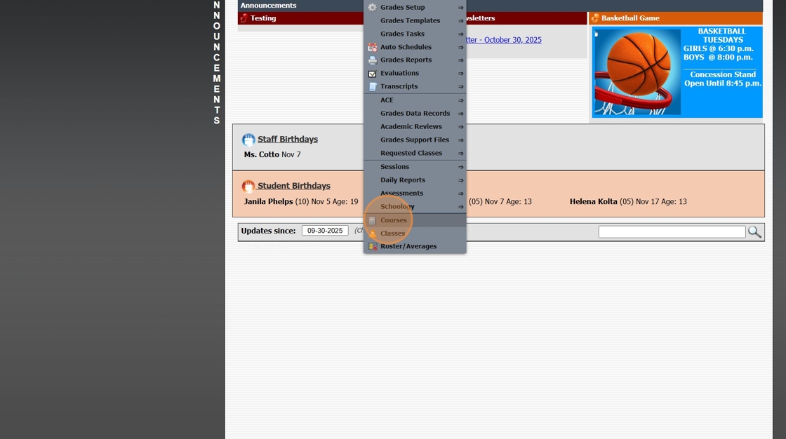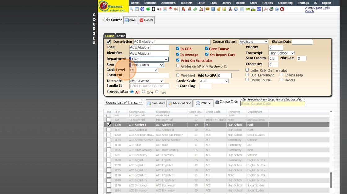 (Grade Level can be set to ELEM, MID or HIGH is Courses is used by Multiple Grade Level in the Same School Level)