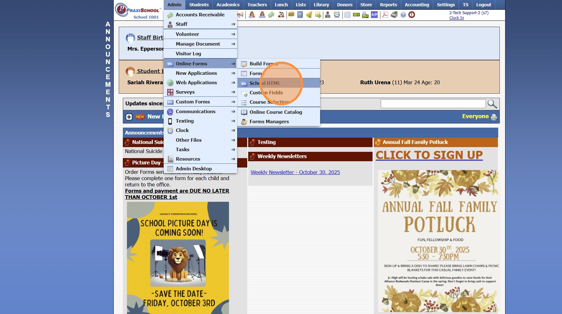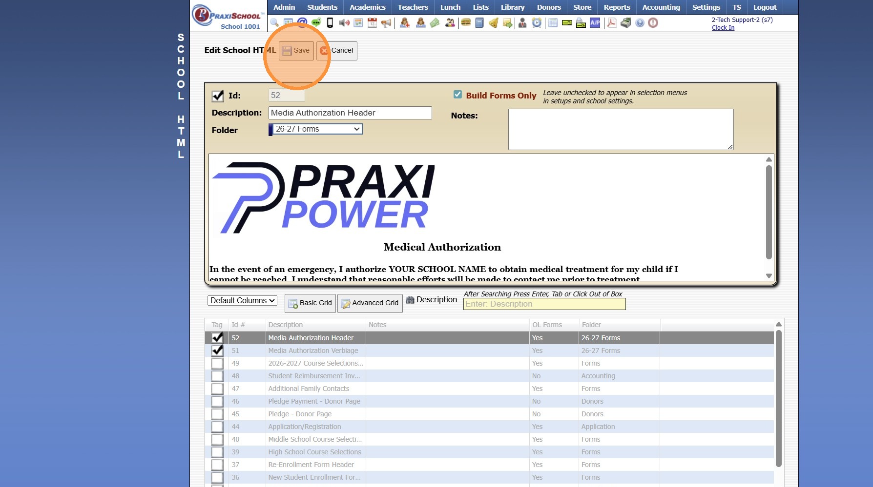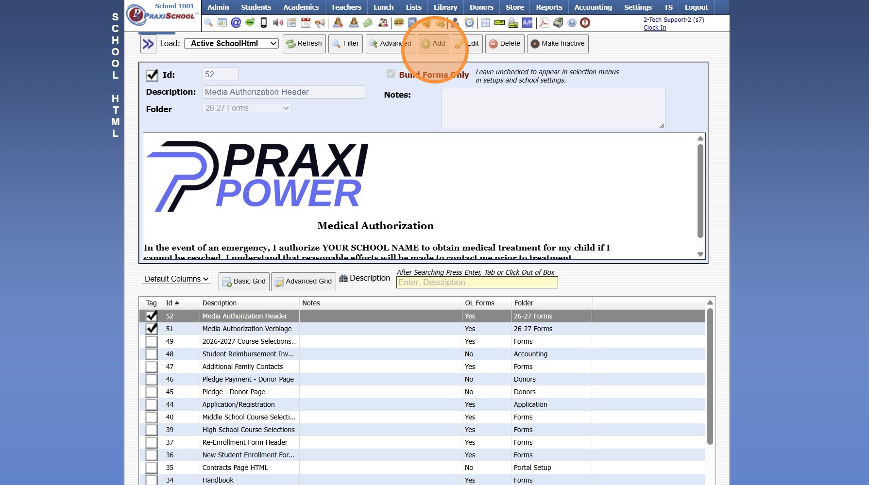 Adding School HTML for Online Forms
