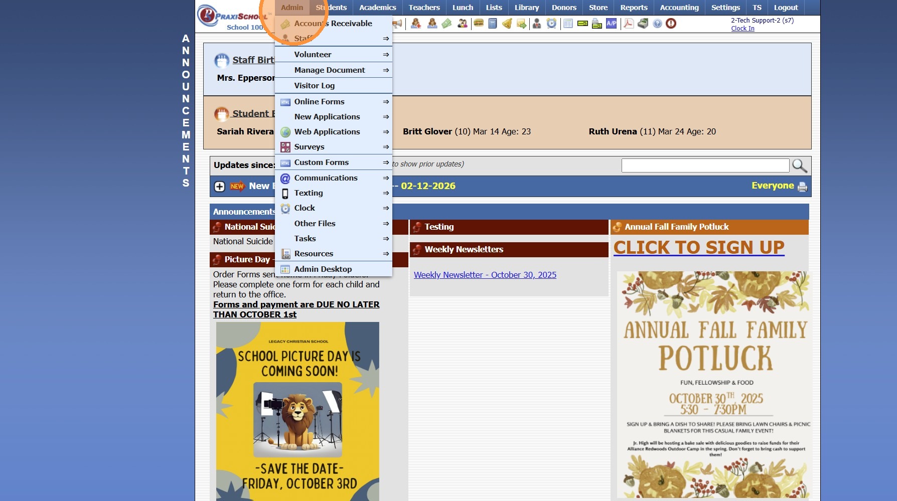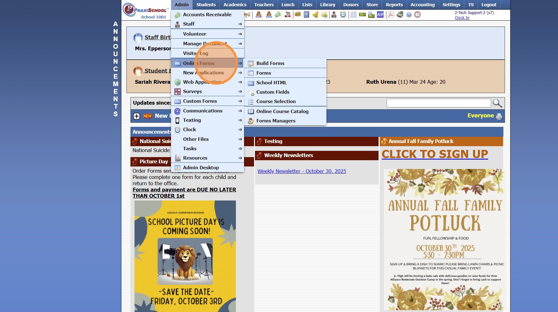 1. Click "Admin" 2. Click "Online Forms" 3. Click "Forms" 4. Select Form 5. Click "Styles & Functionality" Tab 6. Click "Edit" 7. Update Auto Start & Auto End Dates (If Using) 8. Click "Portal" Tab 9. Update Verbiage (If Using & Verbiage Contains ...