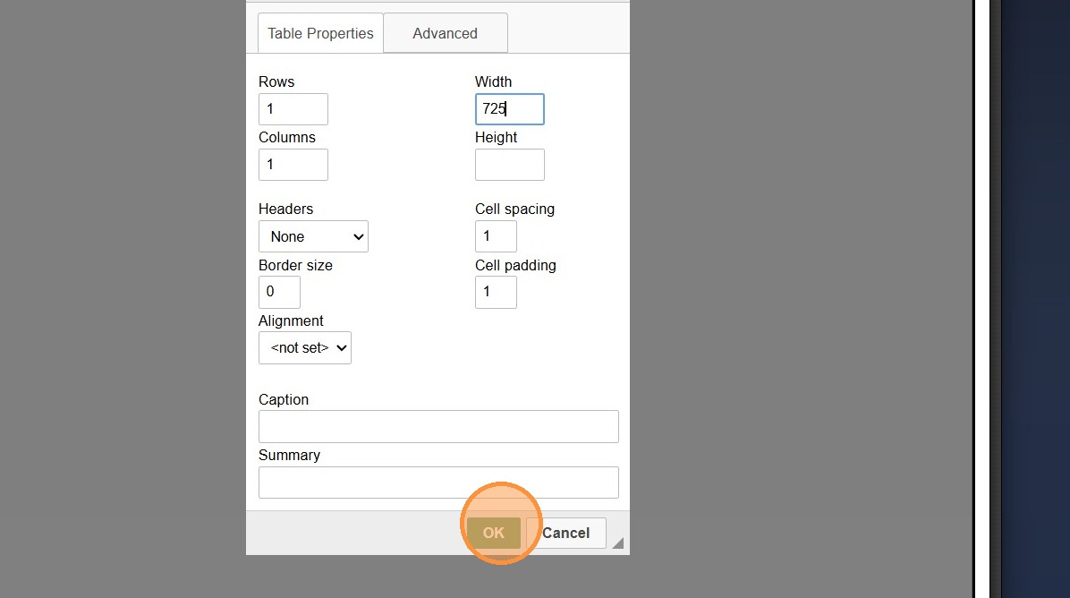 11. Click the Table Icon to Create a Table