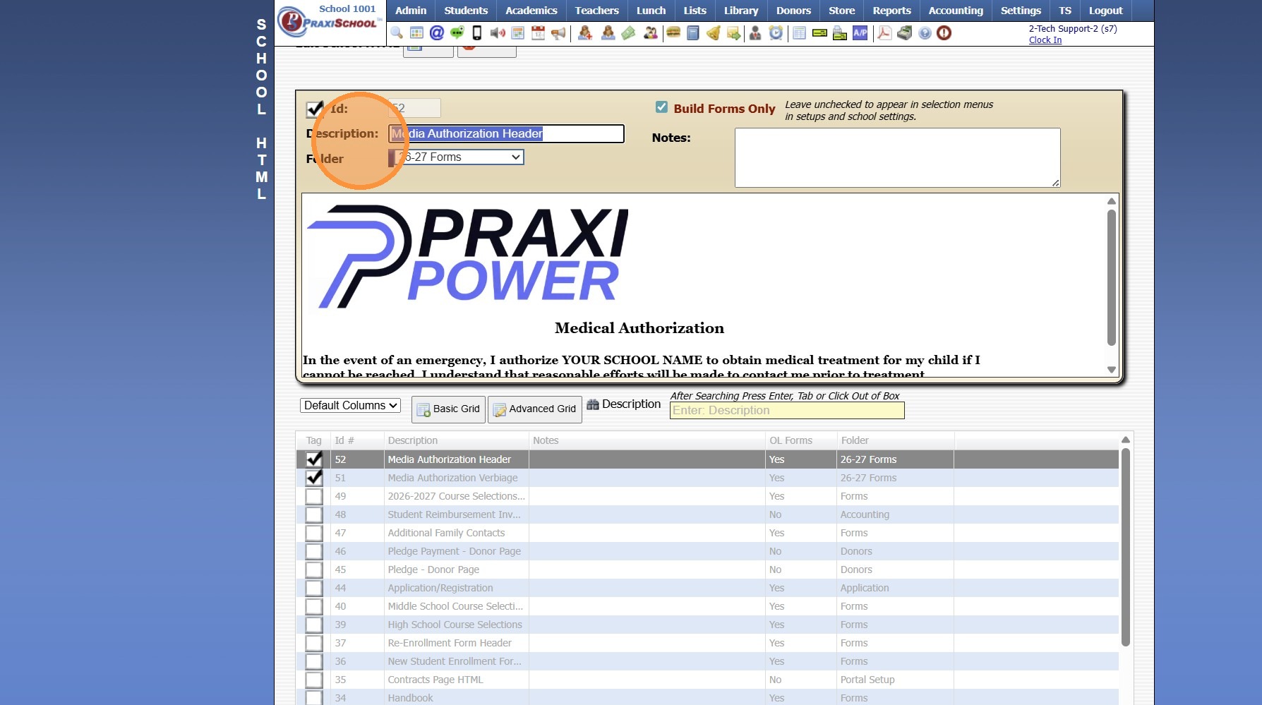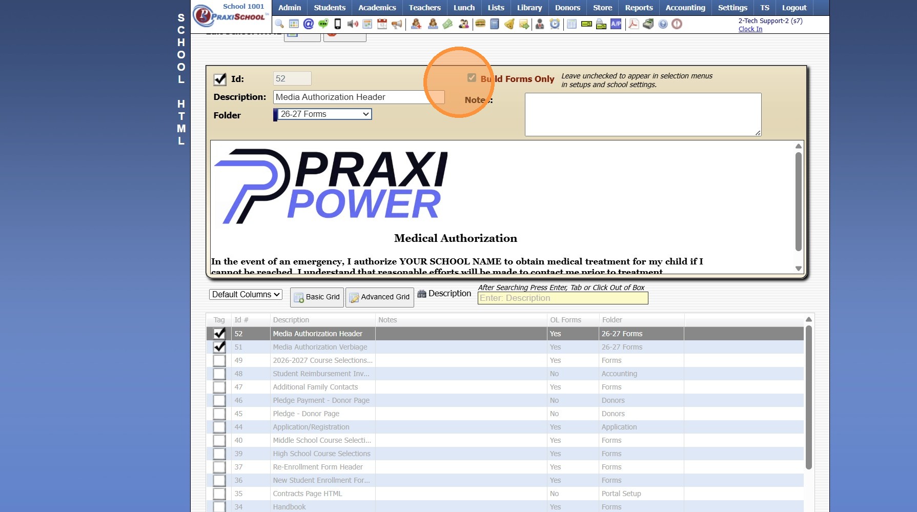 1. Click "Admin" 2. Click "Online Forms" 3. Click "Forms" 4. Select Form 5. Click "Header HTML" 6. Click "Preview Form" 7. A Preview of the Form will Populate 1000.6.20