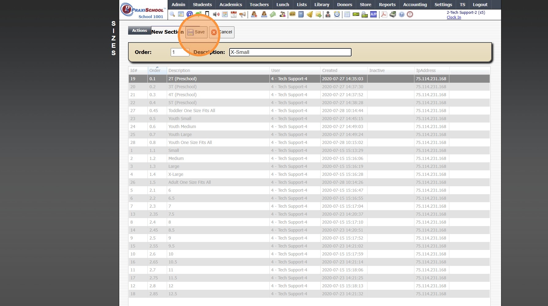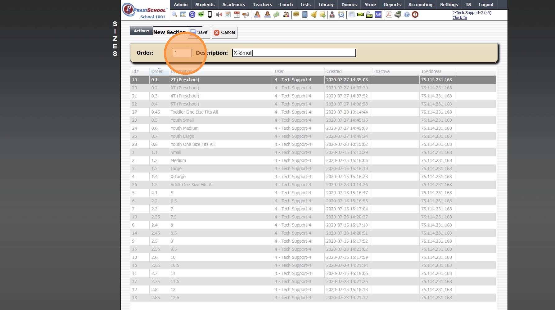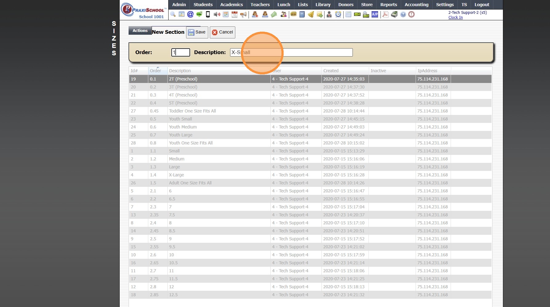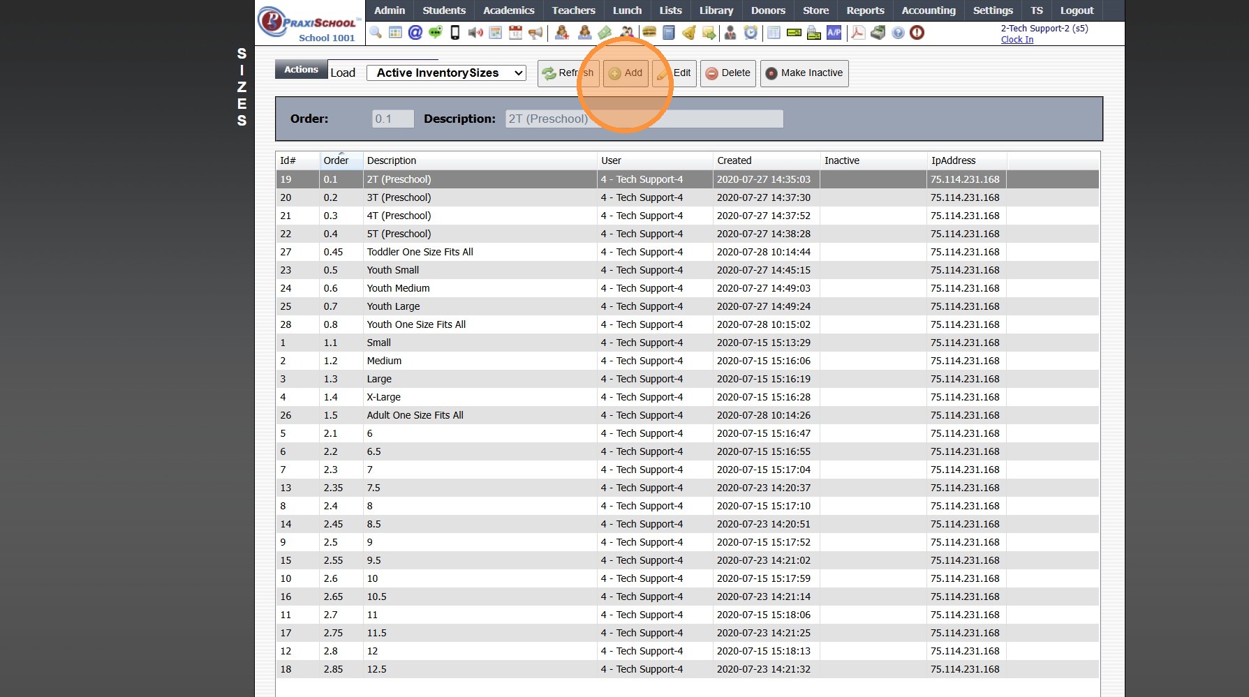 Adding Store Inventory Item Sizes