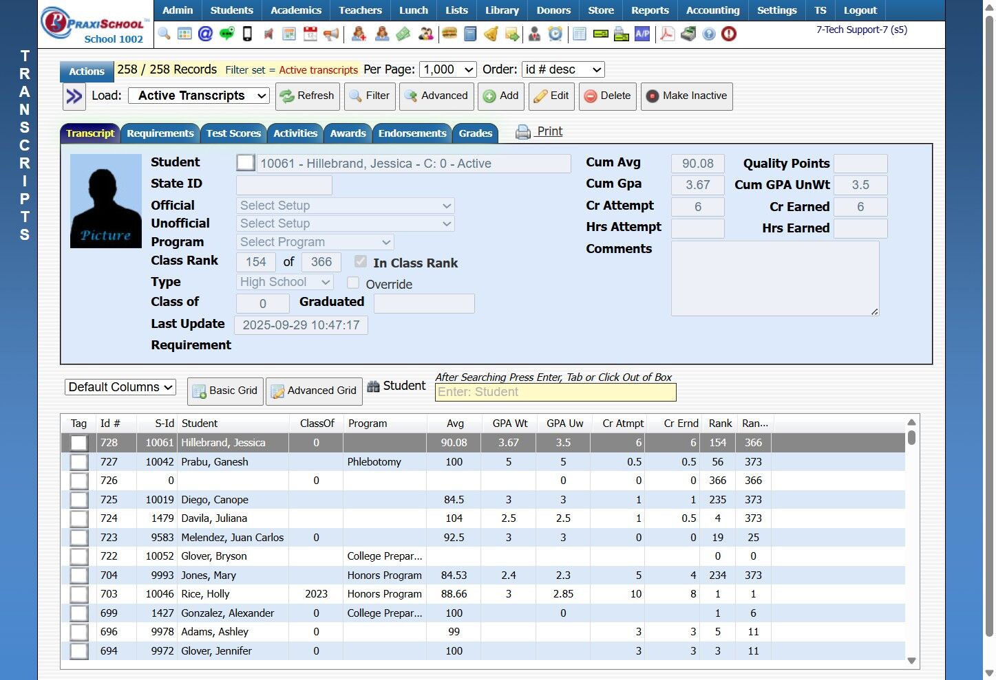 Alert: Alert! If you do not have semester data but rather annual data, you can enter the data in the Year column only. It will depend on the type of transcript you are printing. If you print semester then you will enter data into semester. If you are printing annual, you can use semester data to produce annual data.