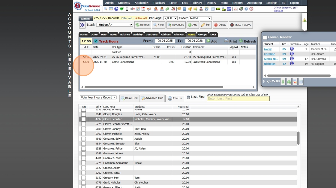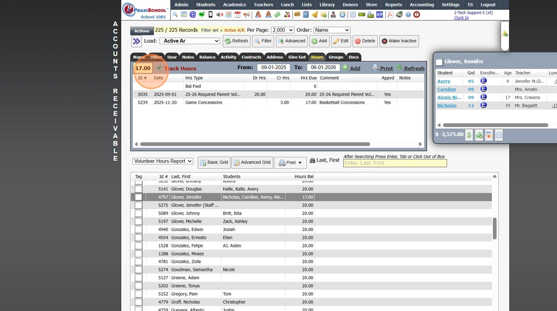 13. Charged and Credited Volunteer Hours are Visible based on the Selected Date Range