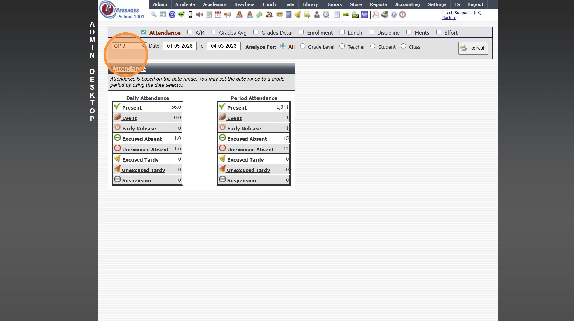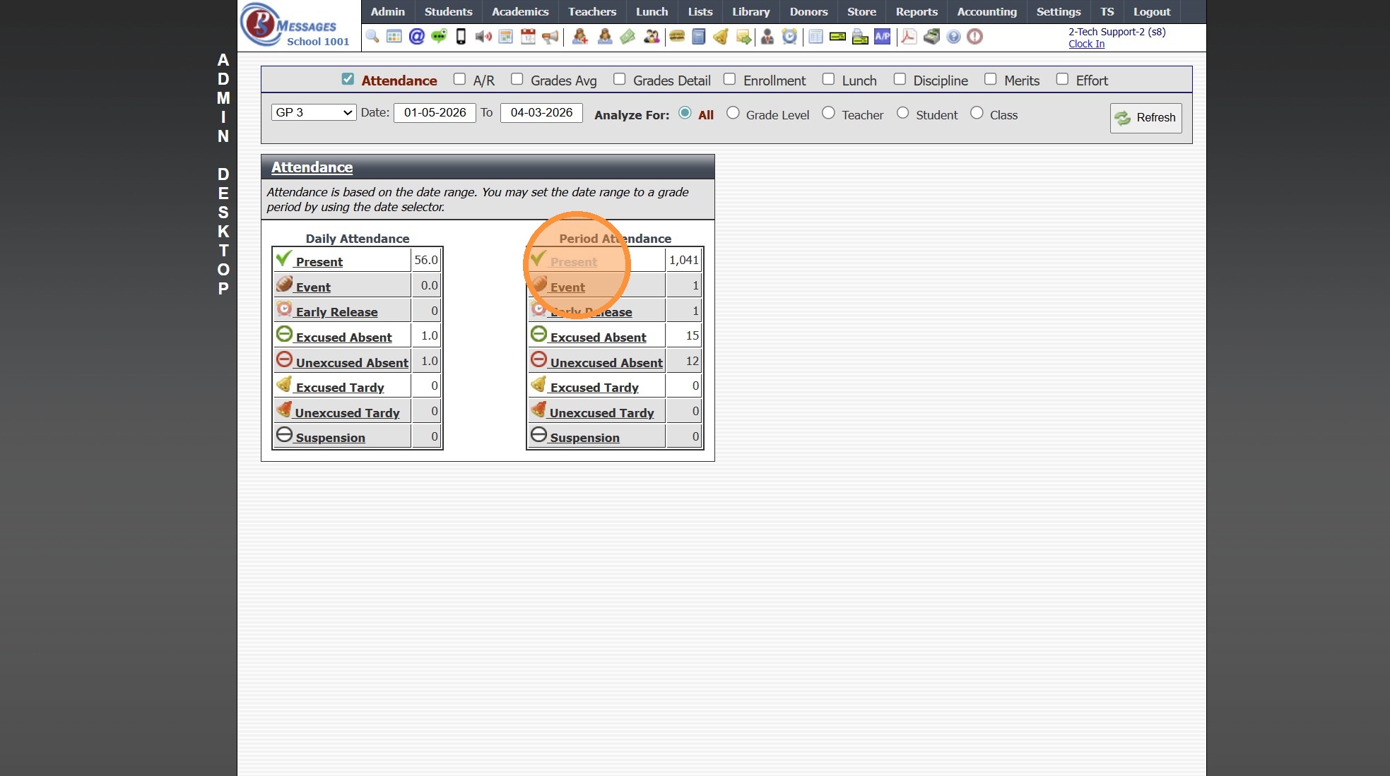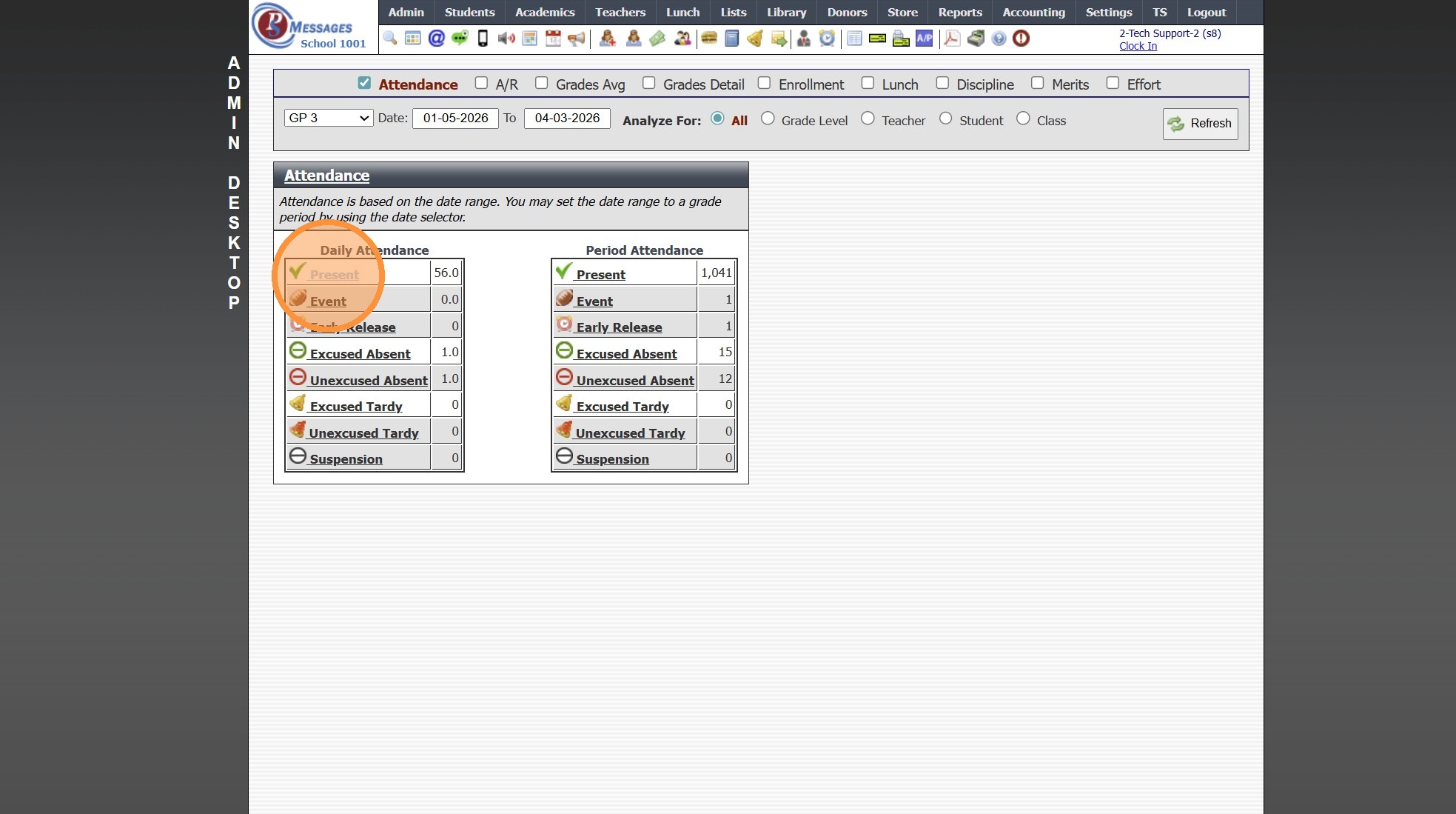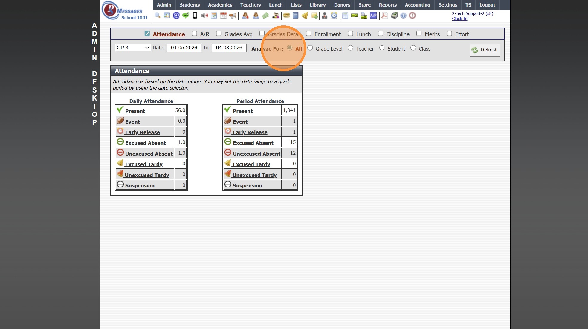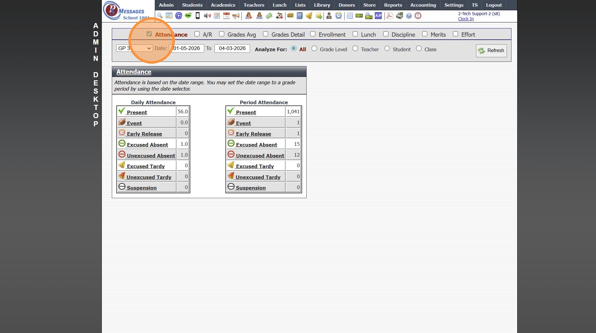 Admin Desktop Reports: Attendance