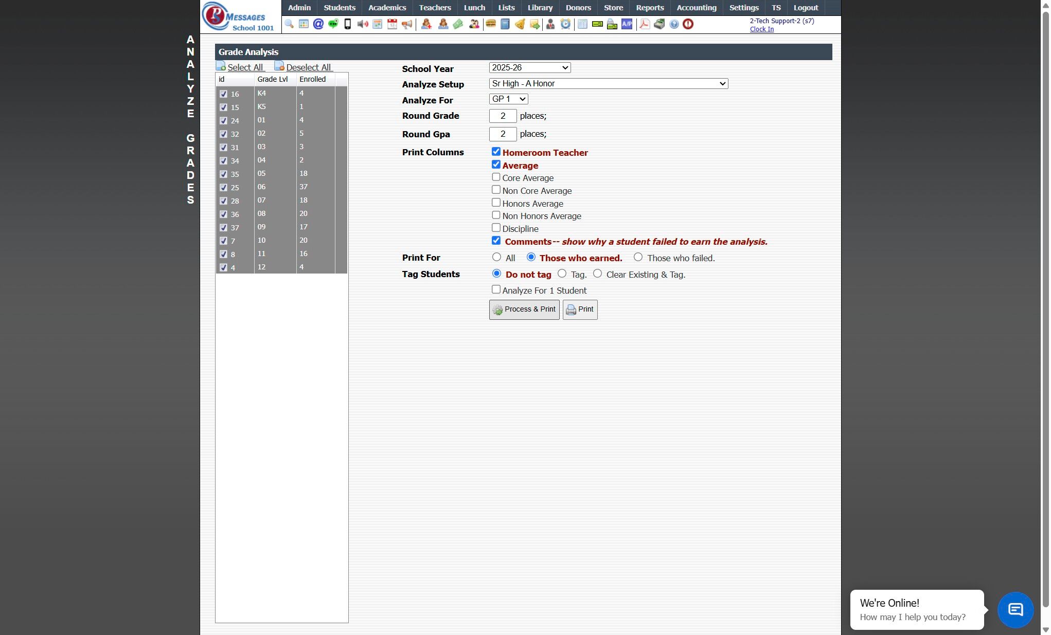 5. Verify Correct School Year is Selected and Select Grade Analysis Setup