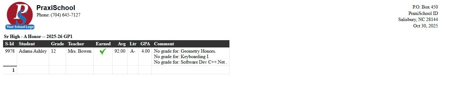 Classroom Incomplete Grades Report 1. Log into PraxiSchool 2. Click "Teachers" 3. Click "Classroom" 4. Select Class 5. Click "Reports" 6. Click "Incomplete Grades" (Incomplete Grades Report shows All Student Assignments marked Incomplete) 7. Click ...