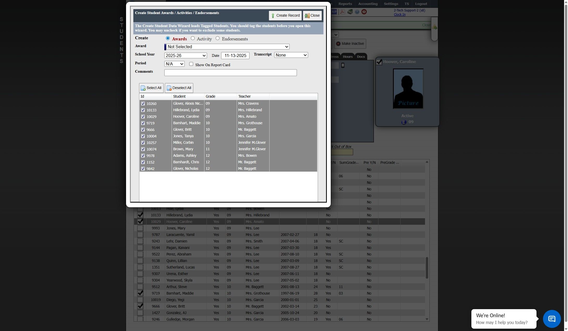 3. Tag Students to Assign Award, Activity or Endorsement