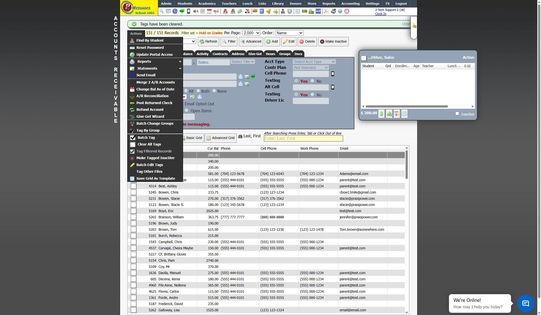 Batch Tagging AR Record from a Selected Filter & Batch Editing Hold on Grades Option 1. Click "Admin" 2. Click "Accounts Receivable" 3. Select Current Balance Filter 4. Click "Actions" 5. Click "Clear All Tags" 6. Click "Actions" 7. Click "Tag ...