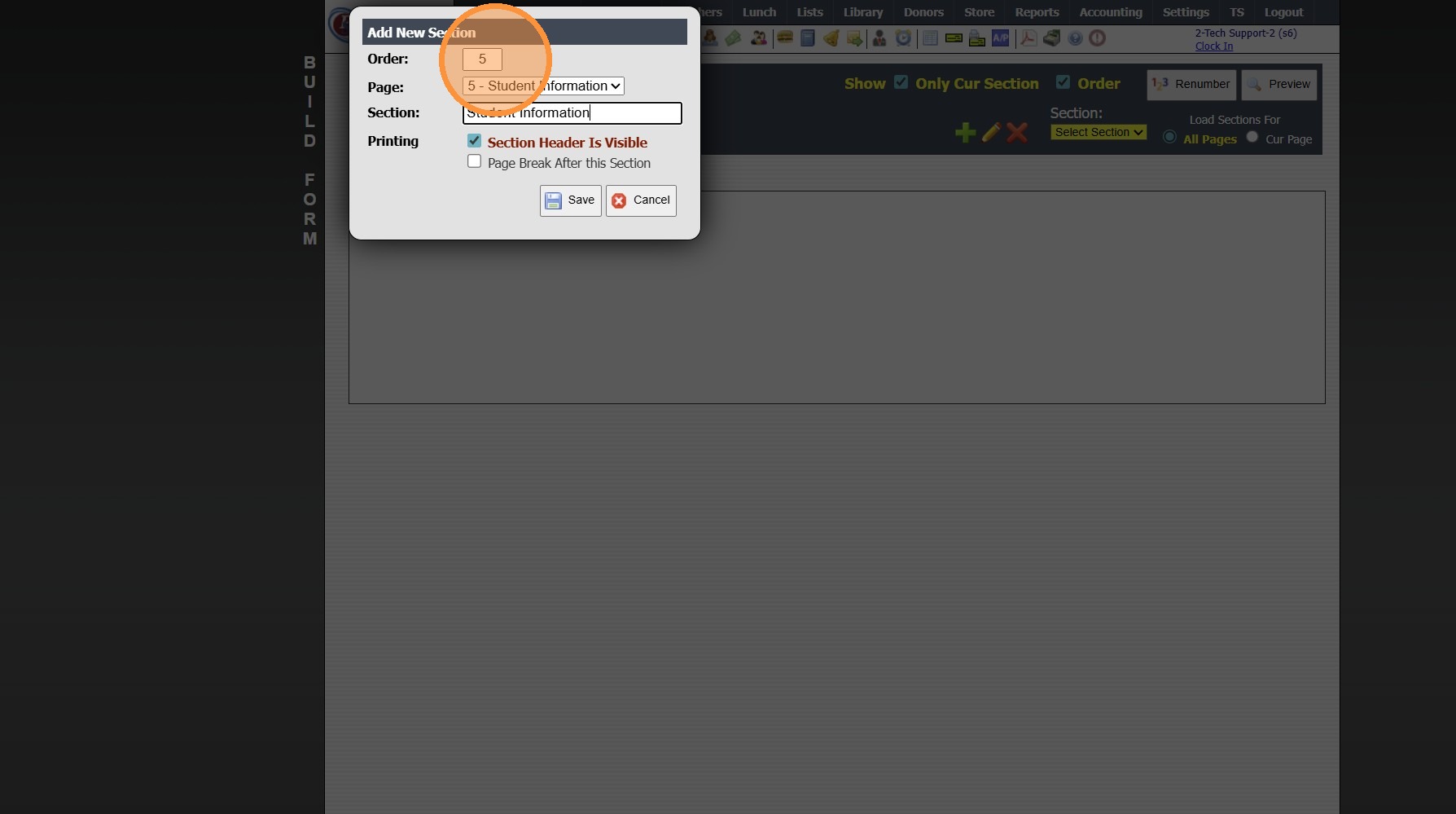 11. Enter the Order Number, Select Page & Enter Section Name