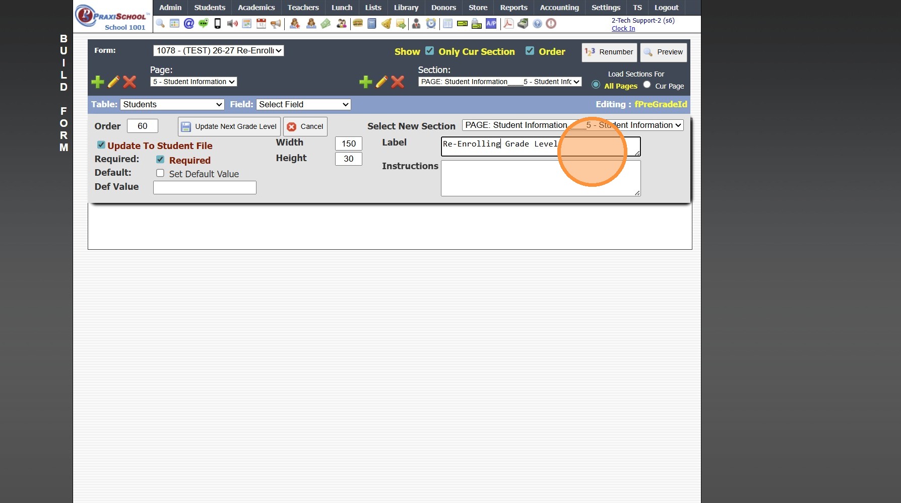 1. Click "Admin" 2. Click "Online Forms" 3. Click "Forms" 4. Click "Add" 5. Add Form Name, Description and Portal Form Name 6. Select the For Portal Option: "Application Site (Only new registration)" 7. Click "Test" to put in Test Mode until Form is ...
