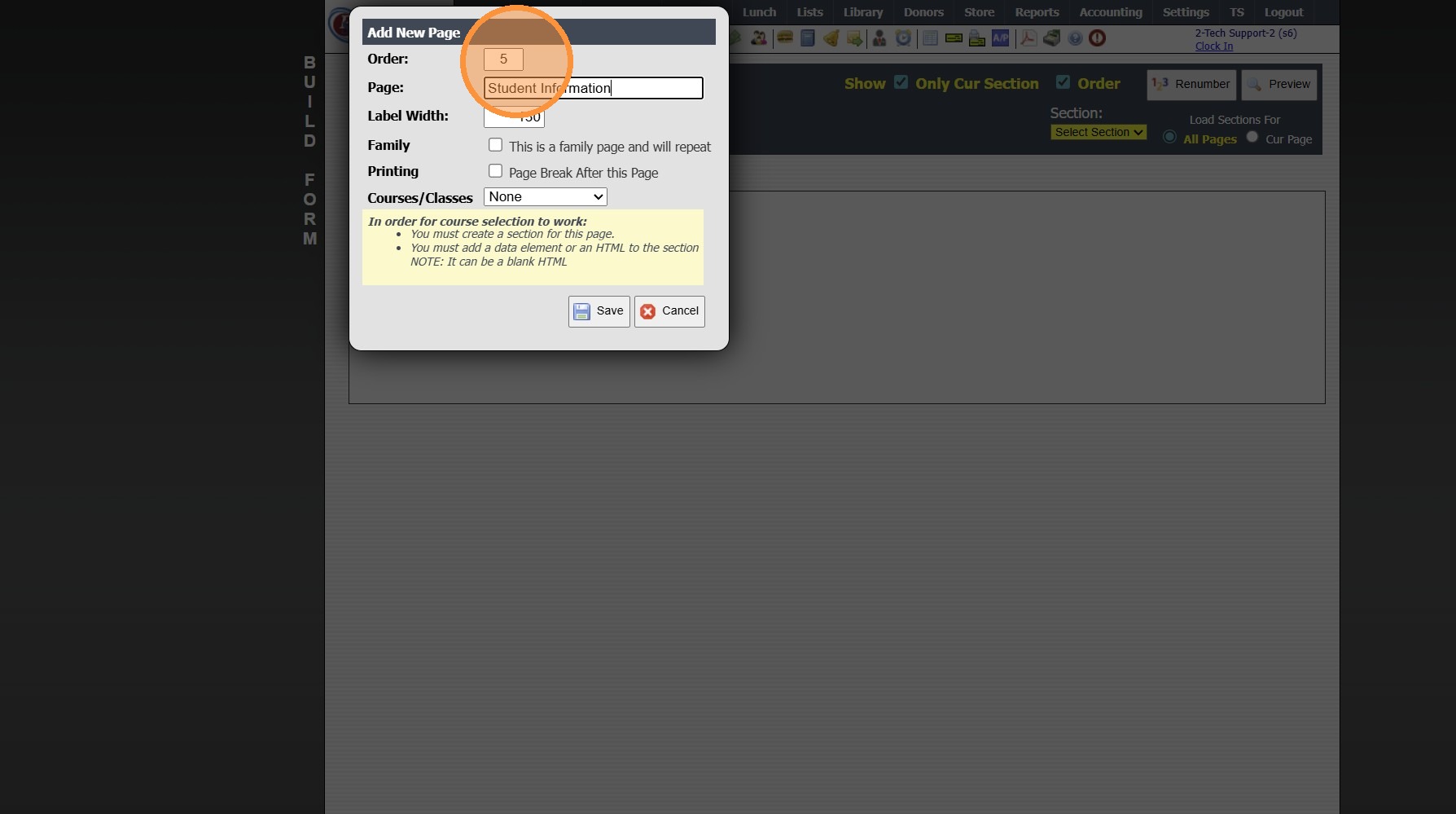 (Recommendation: Set Order Numbers in Increments of 5 or 10 to Allow Additional Pages to be added in-between)