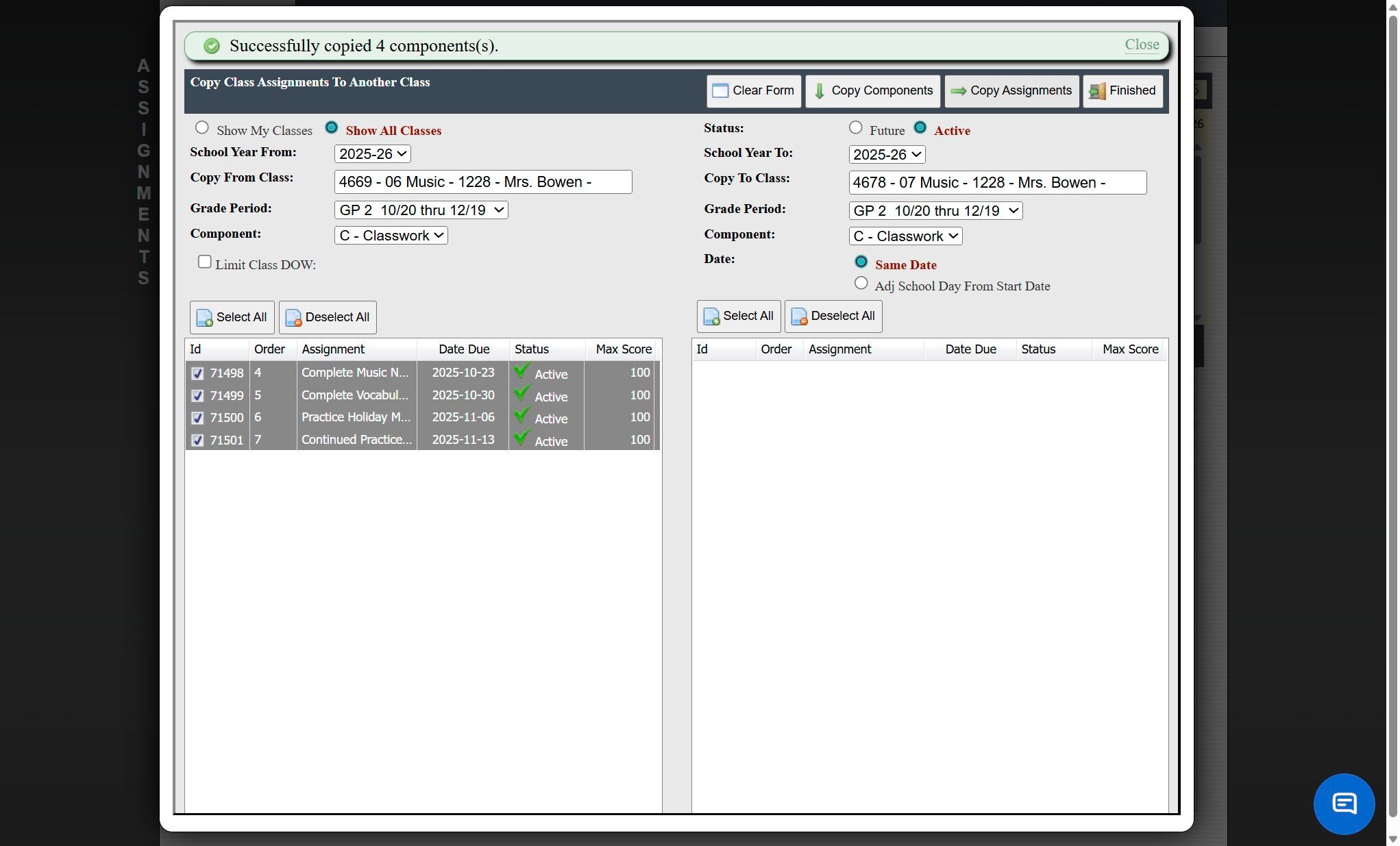 10. If Components have not been Created, Components can be Copied from One Class to Another OR from One Grade Period to Another