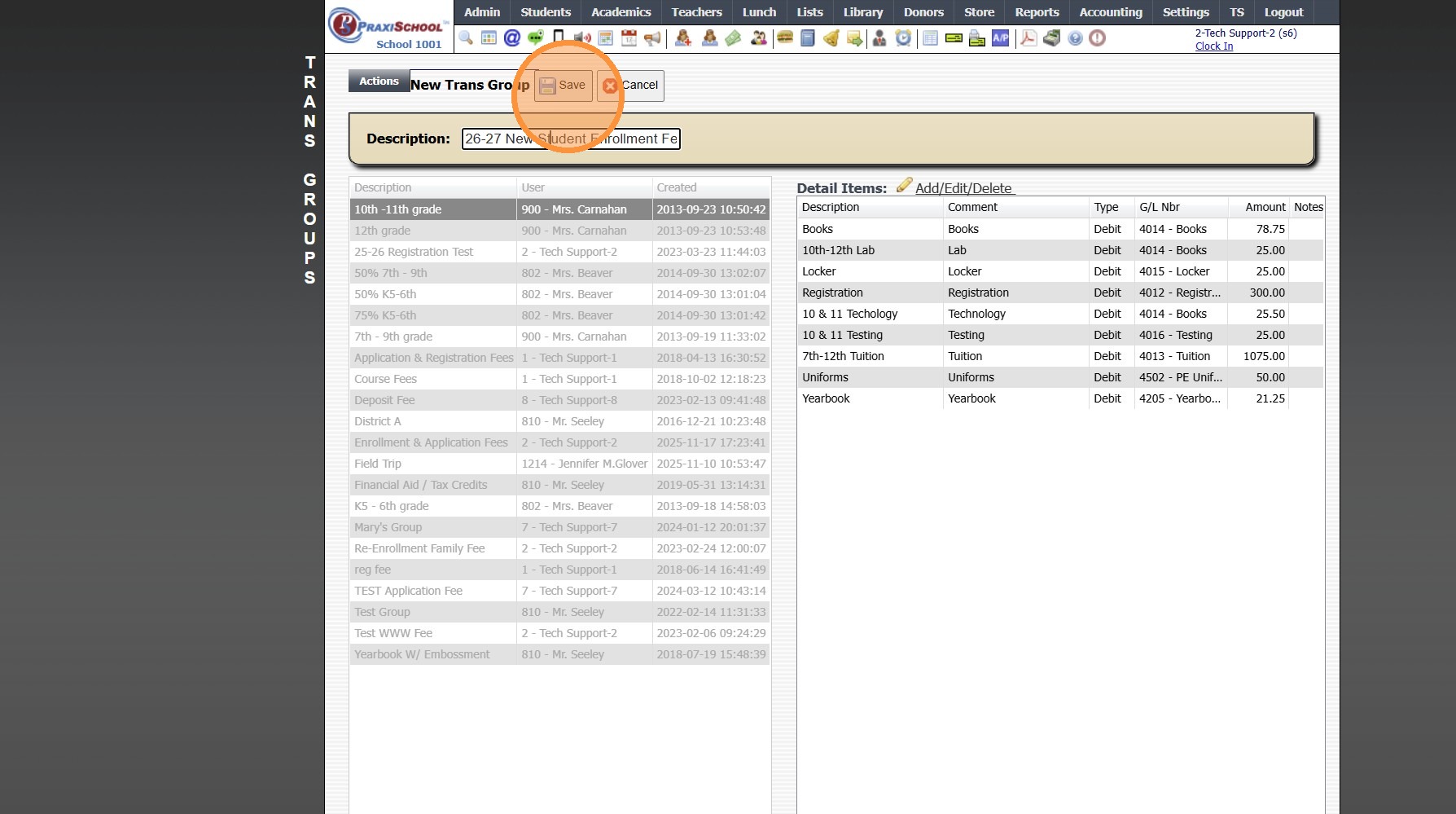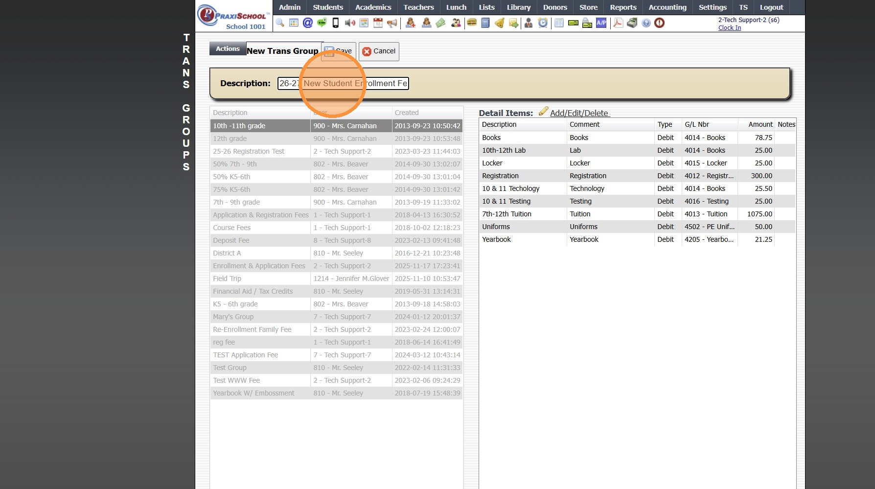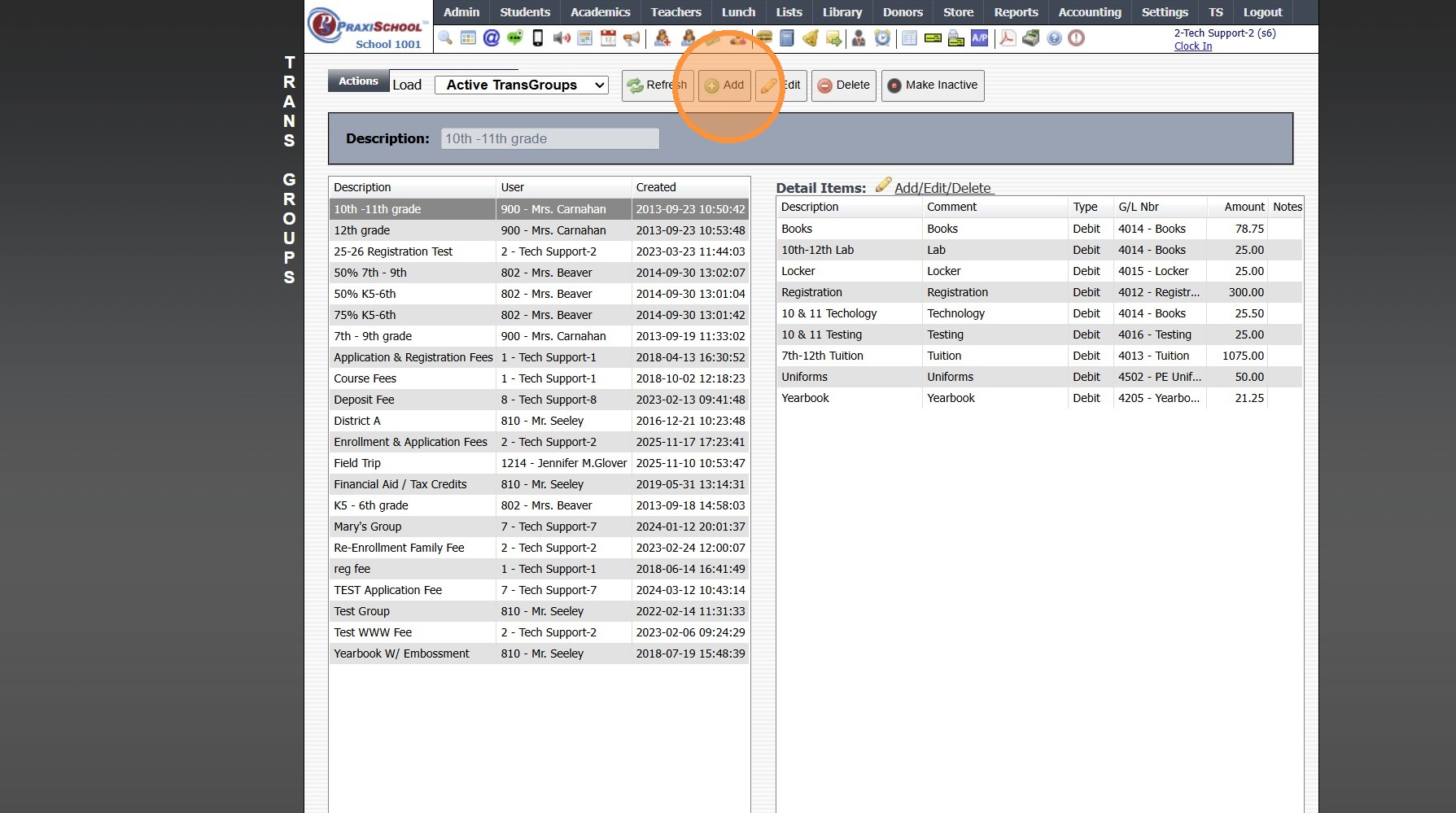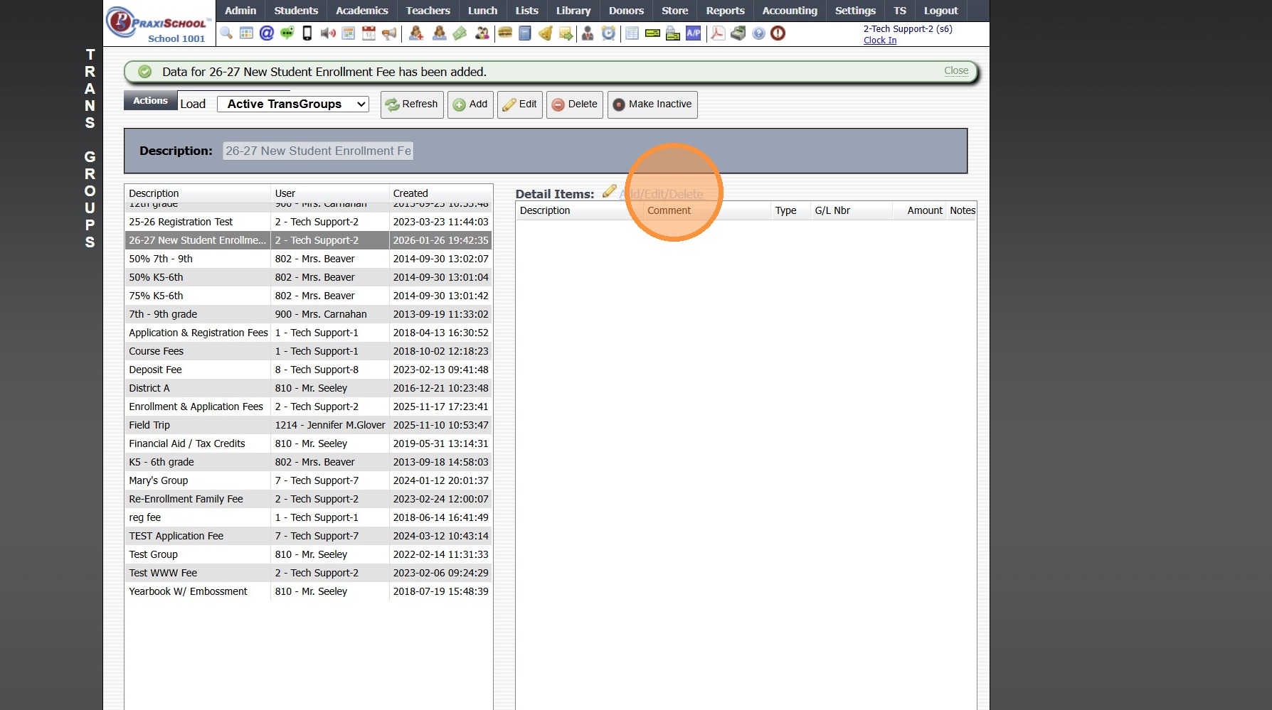 8. Select Transaction Item & Click Add