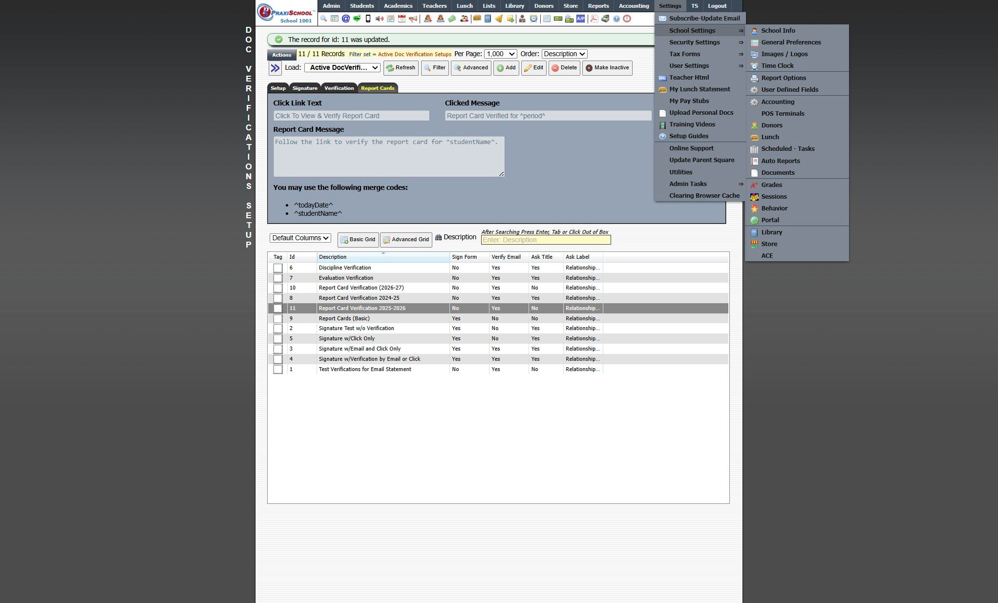 Creating a Report Card Verification and Connecting in Settings