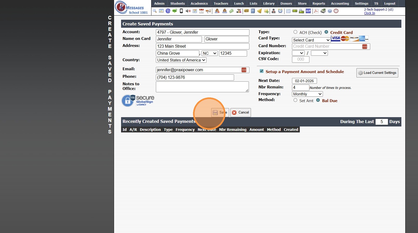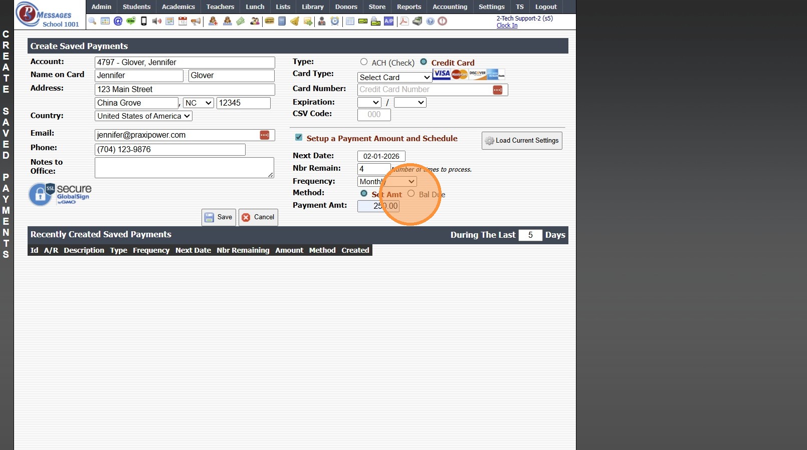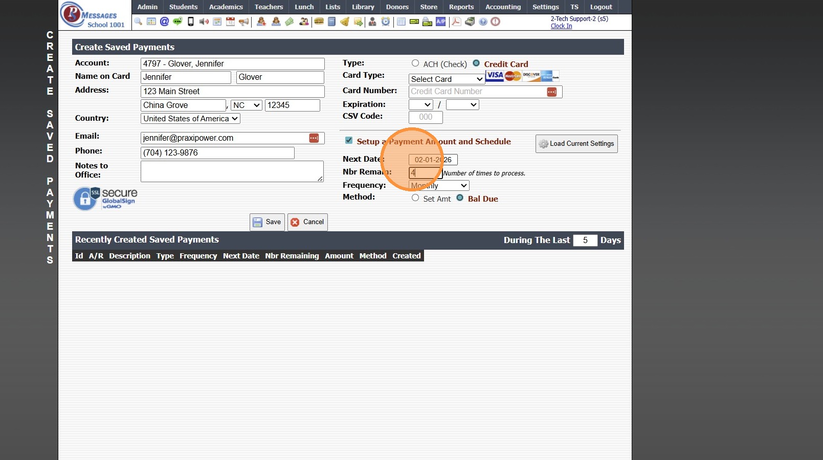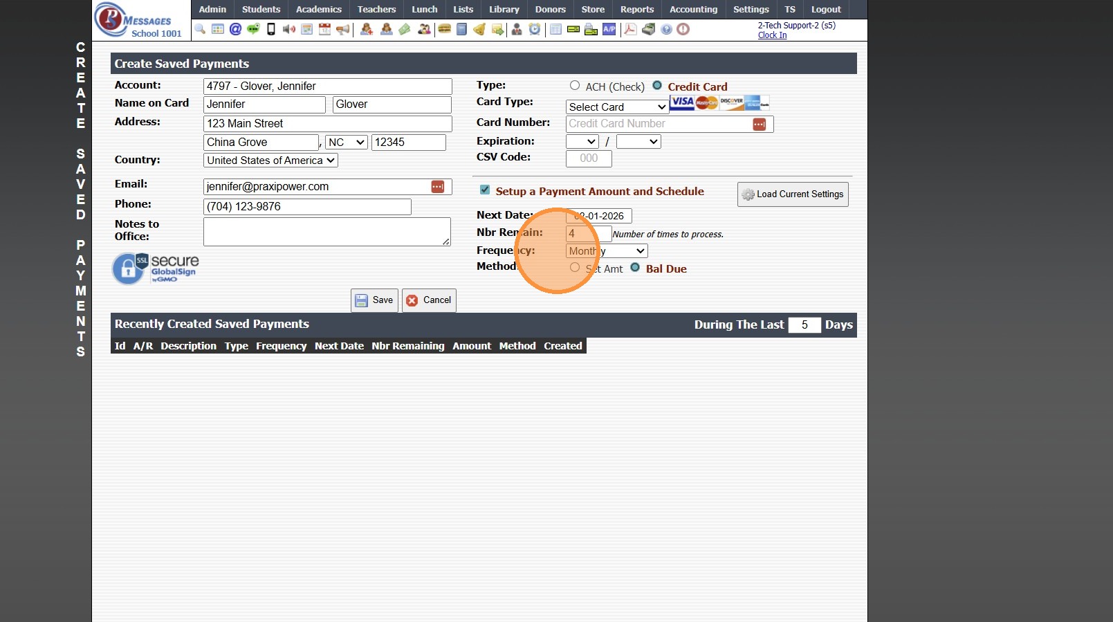 Creating a Saved Payment & Setup a Payment Amount and Schedule