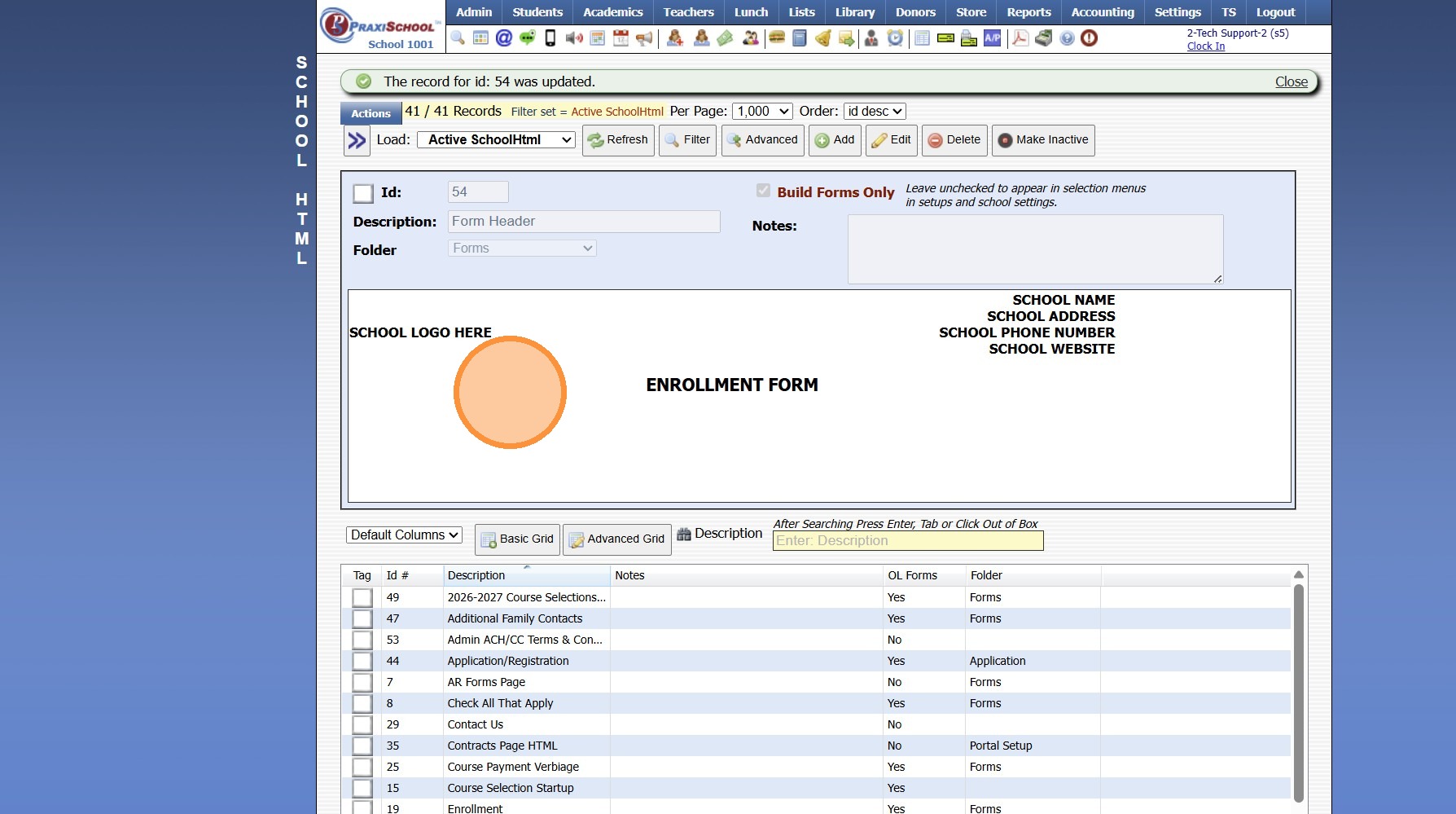 Adding School HTML for Online Forms