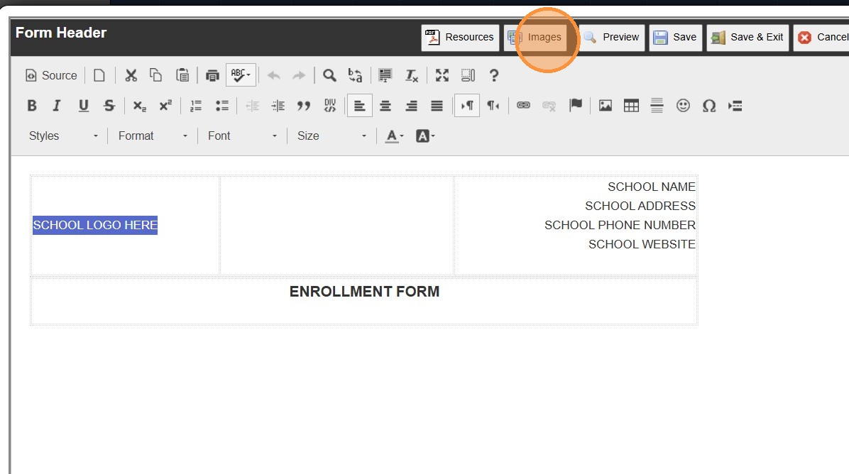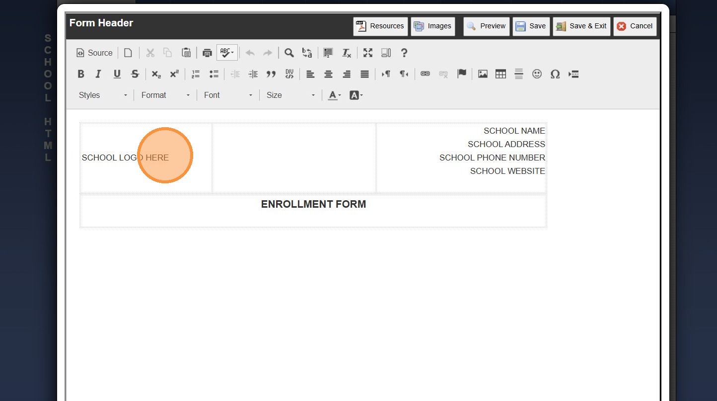 6. Highlight "SCHOOL LOGO HERE"