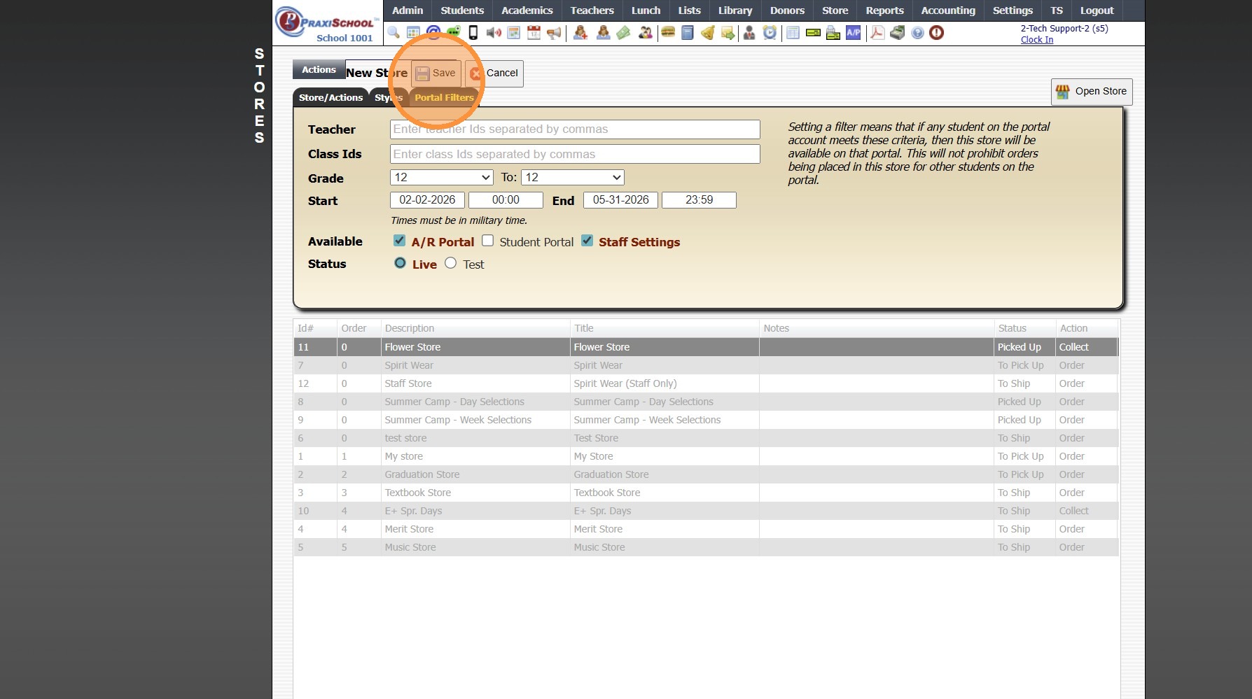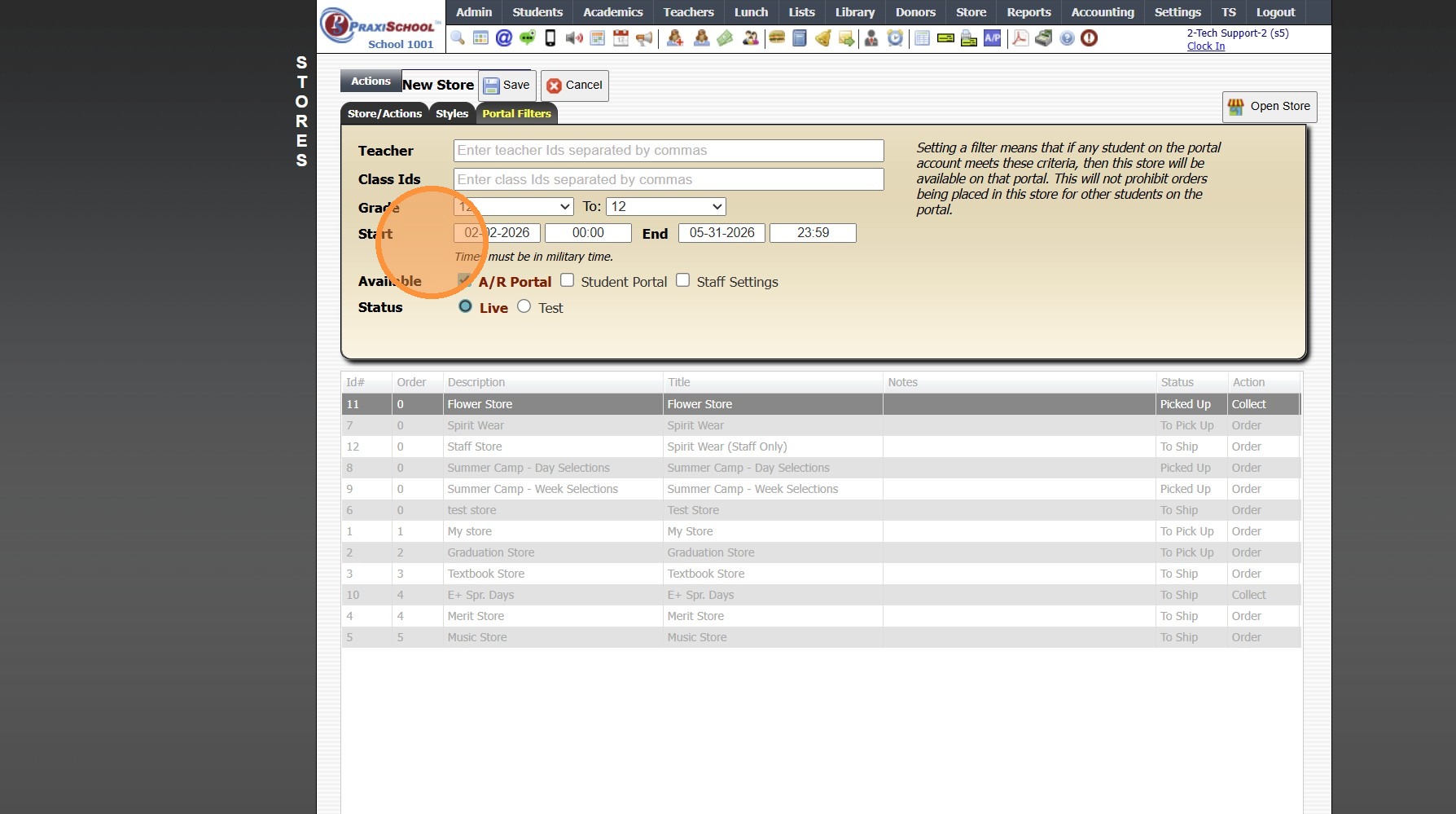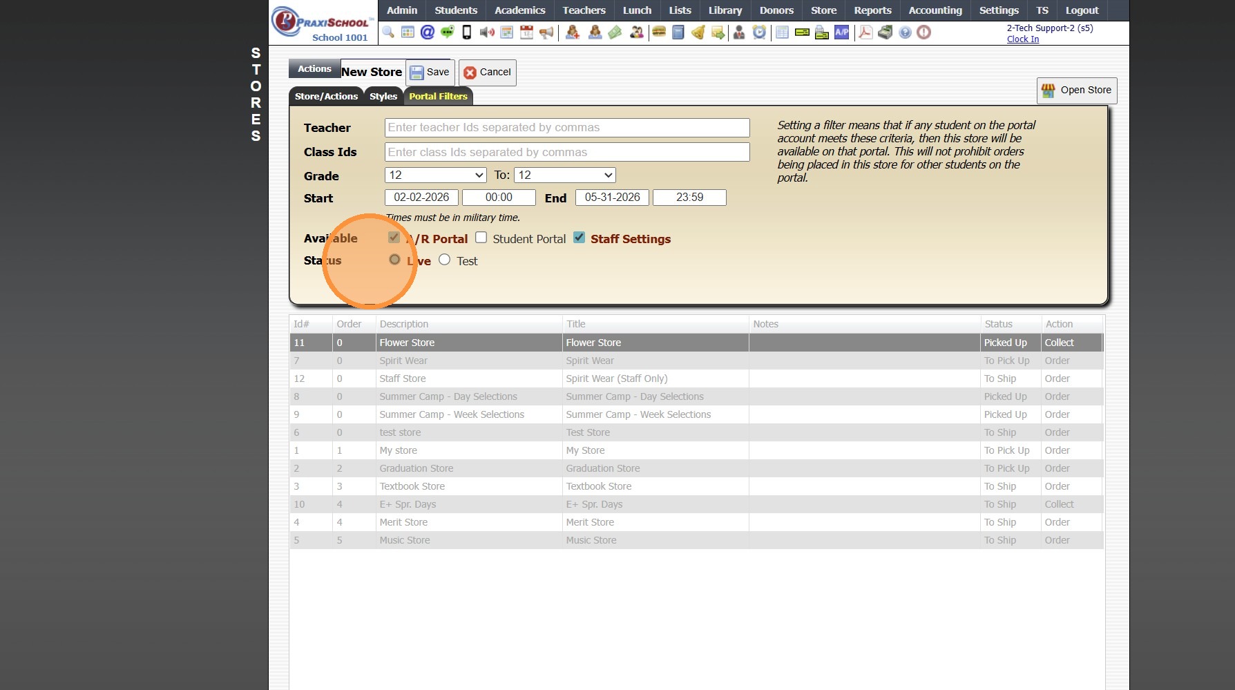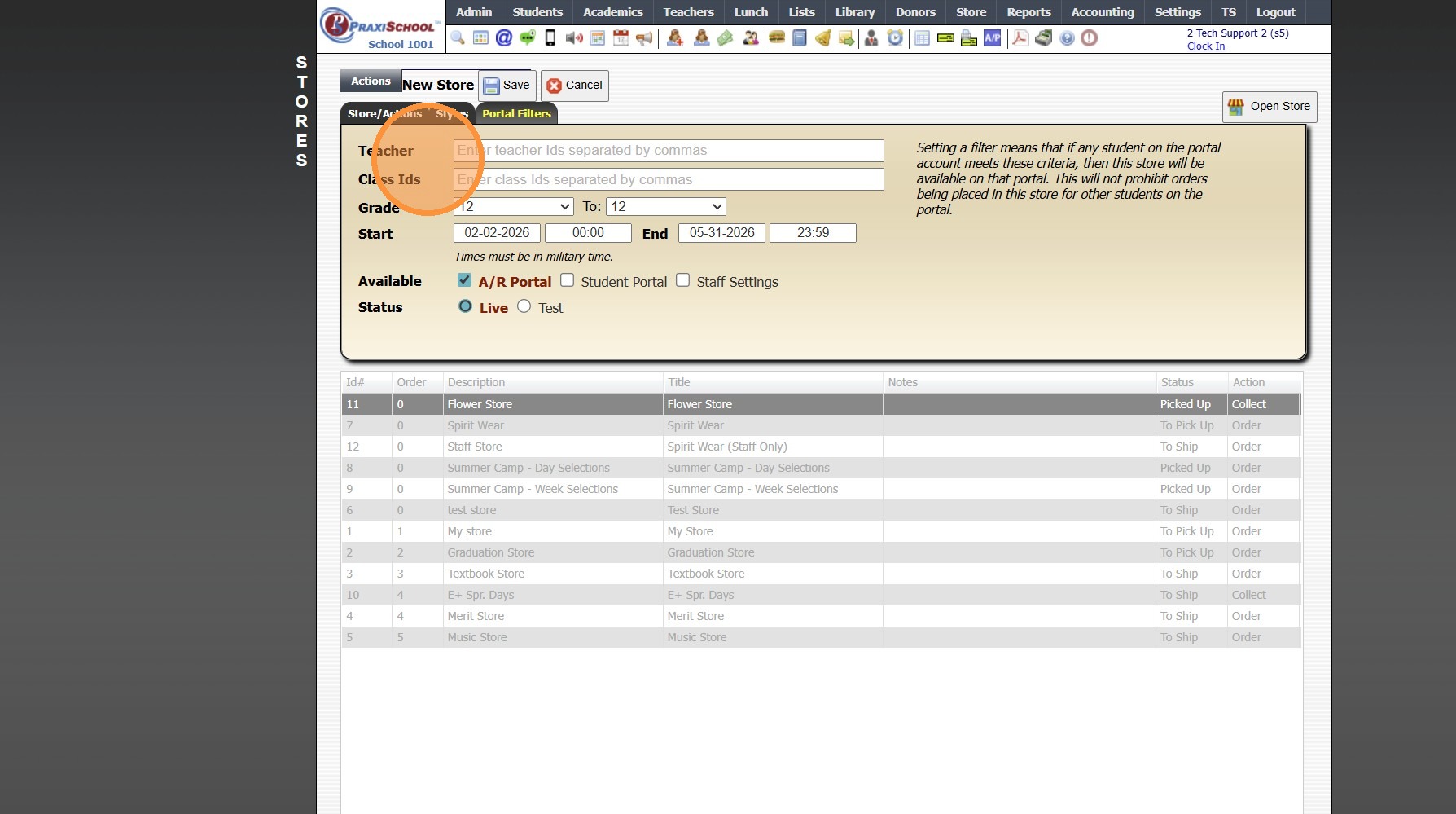 (Class IDs - Store is only Viewable to Parents/Students in Selected Class(es))
