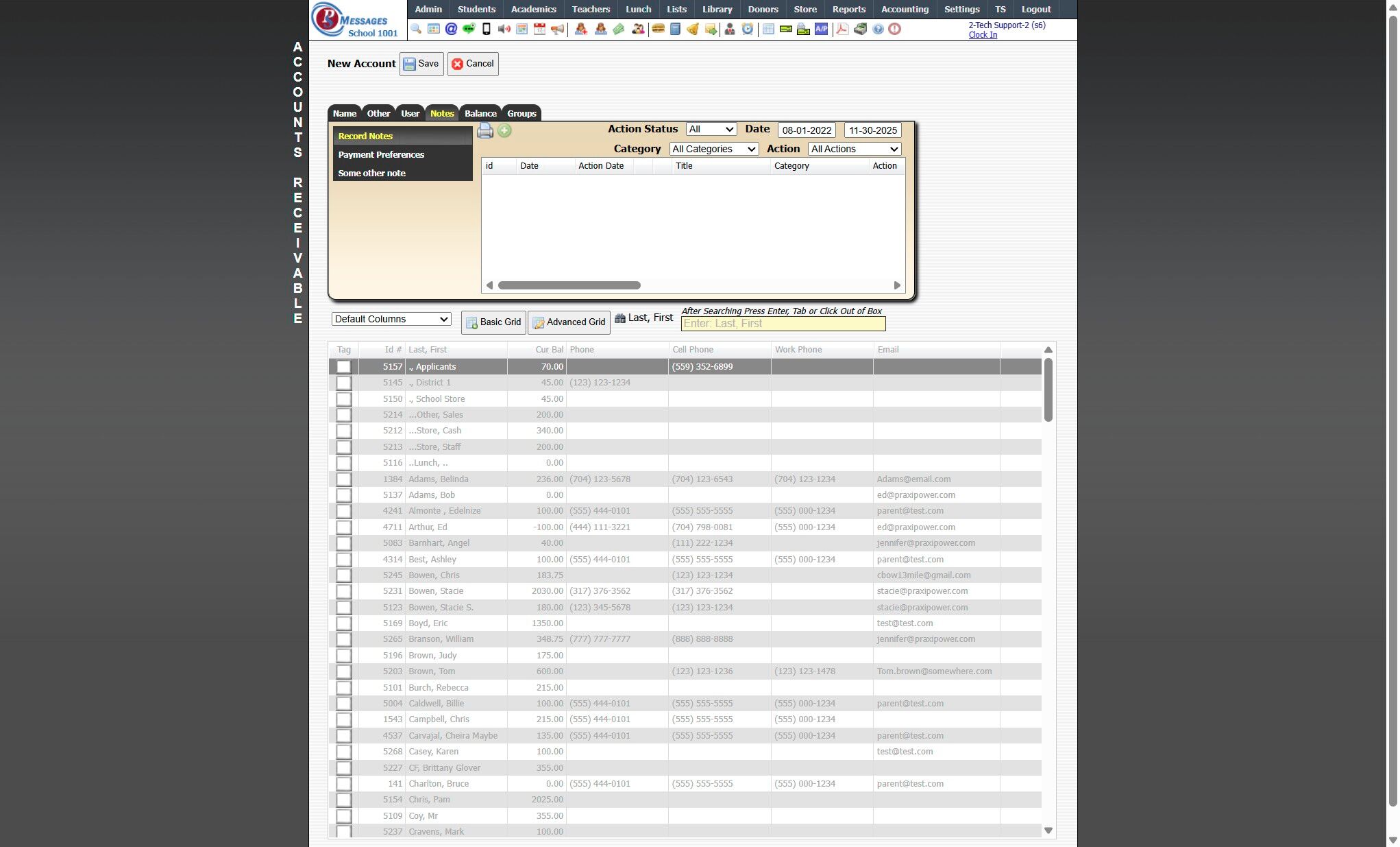 5. If an AR Account needs to be Created that would not need to be connected to a Student (i.e. the Store, Applicants or Lunch) go to Admin, Accounts Receivable