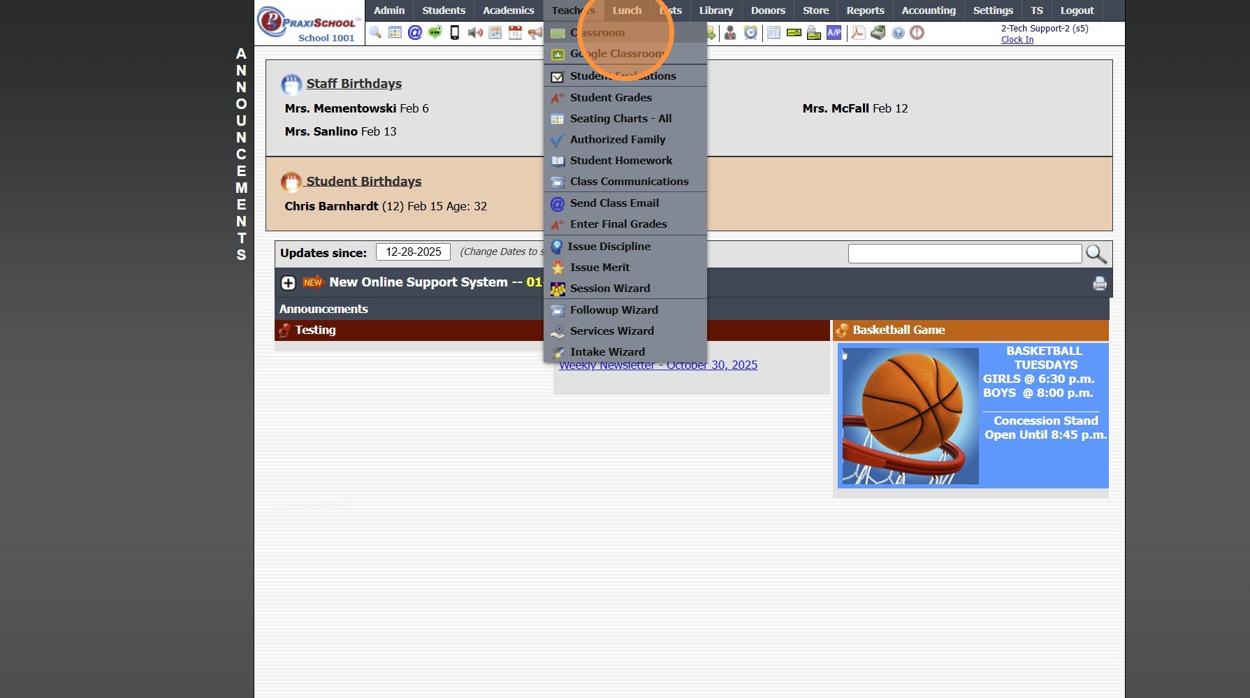 Creating Google Classroom Assignments in PraxiSchool Class 1. Click "Teachers" 2. Click "Google Classroom" 3. Click "Assignments/Grades" 4. Select the Praxi Class 5. Click "Create Google Classroom Assignments In PraxiSchool" Alert: Alert! Make sure ...