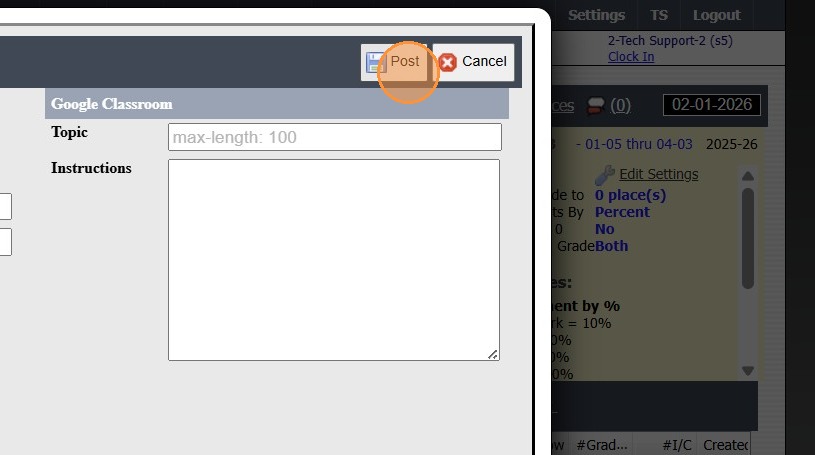 Create Google Classroom Assignment in PraxiSchool Class