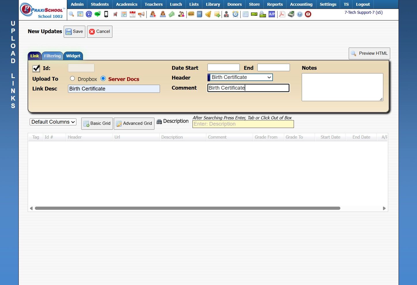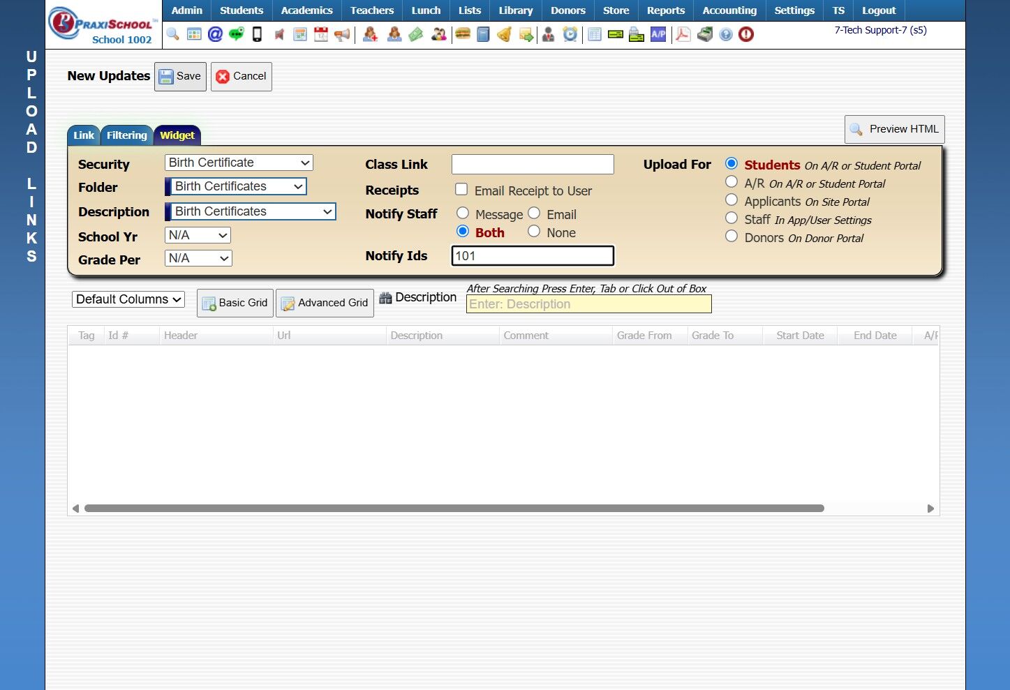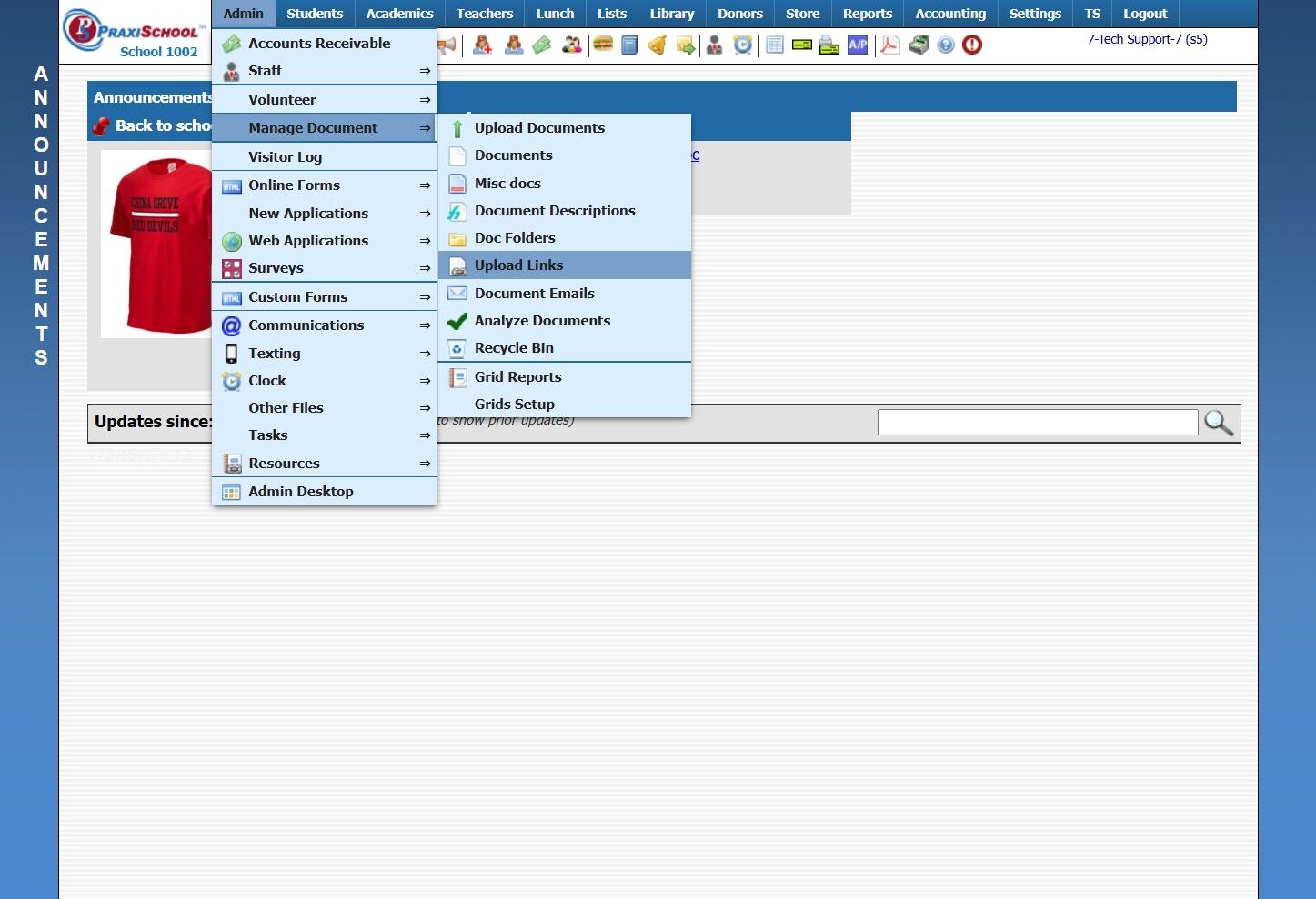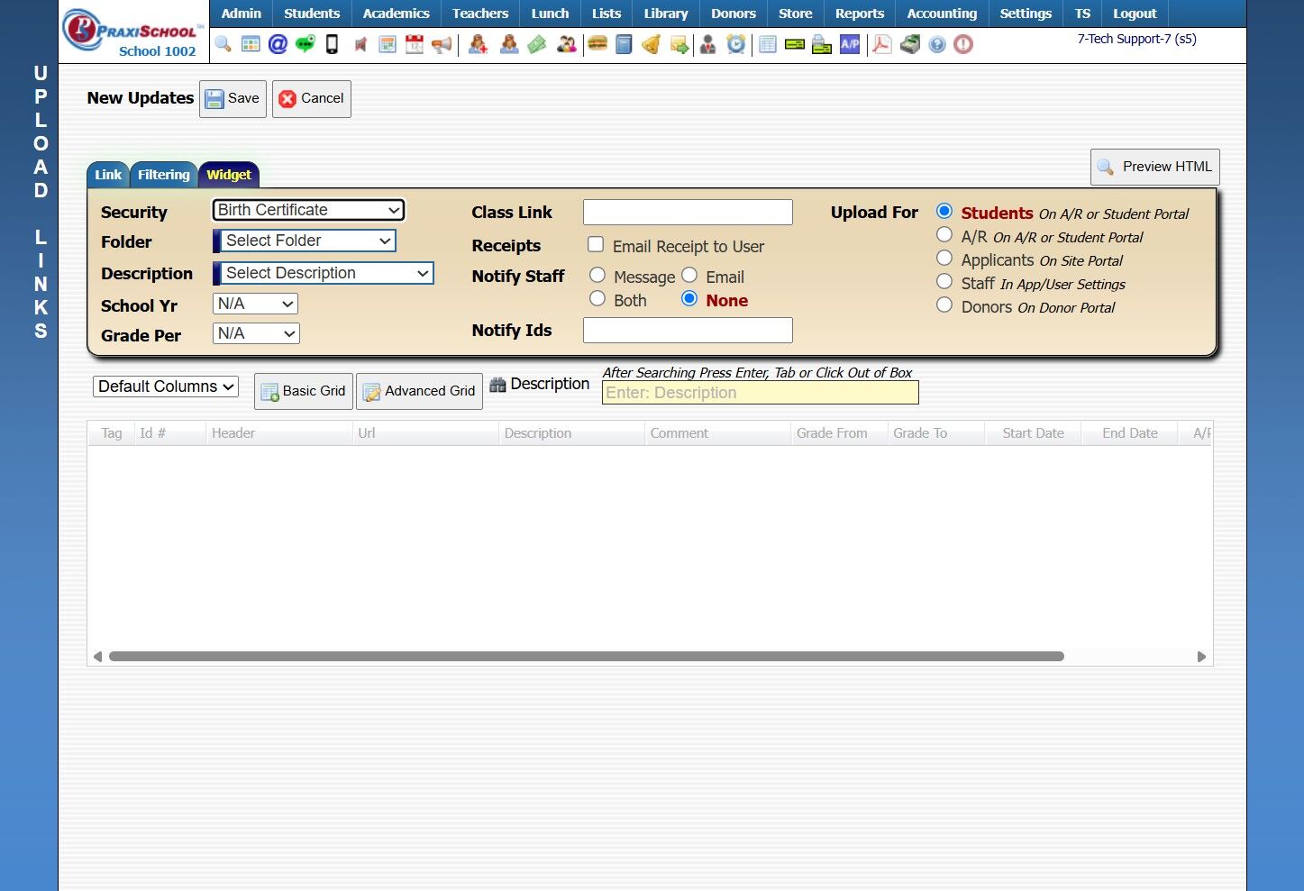 Turning on Document Upload Links in Portals 1. Click "Settings" 2. Click "Security Settings" 3. Click "Portal Access" 4. Click "Edit" 5. Click the "Show A/R Docs" field. 6. Click the "Show Student Docs" field. 7. Click "Resources" 8. Check "Portal ...