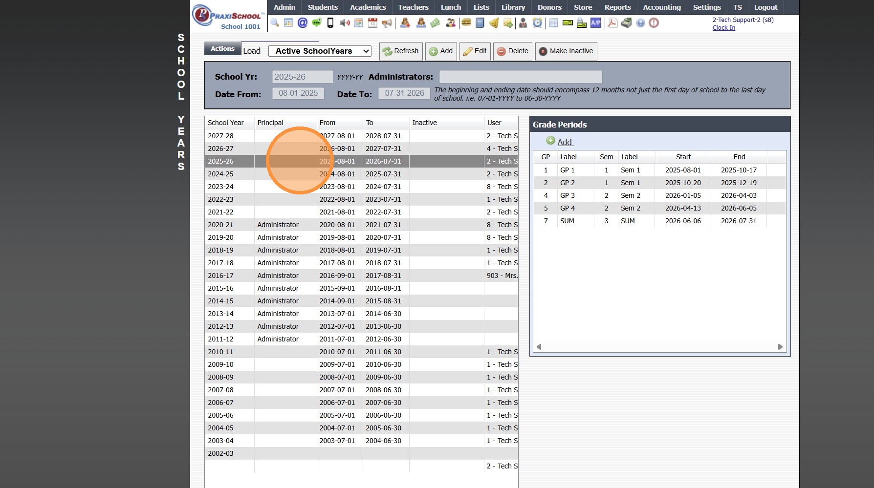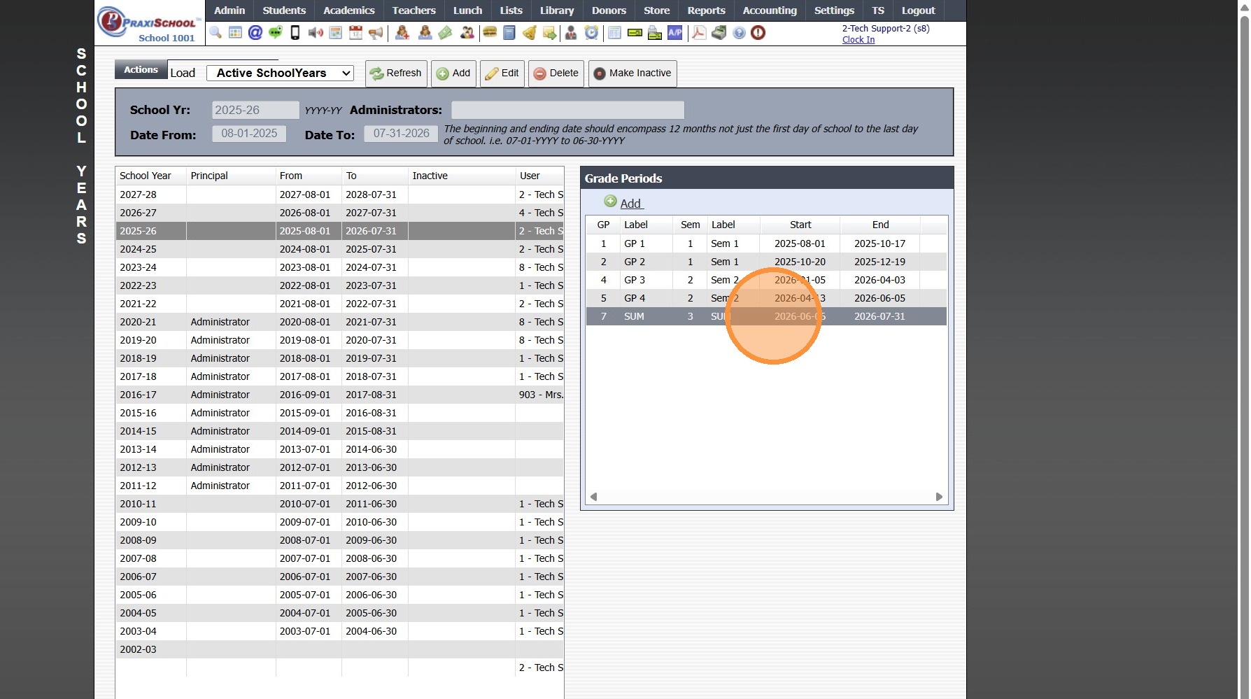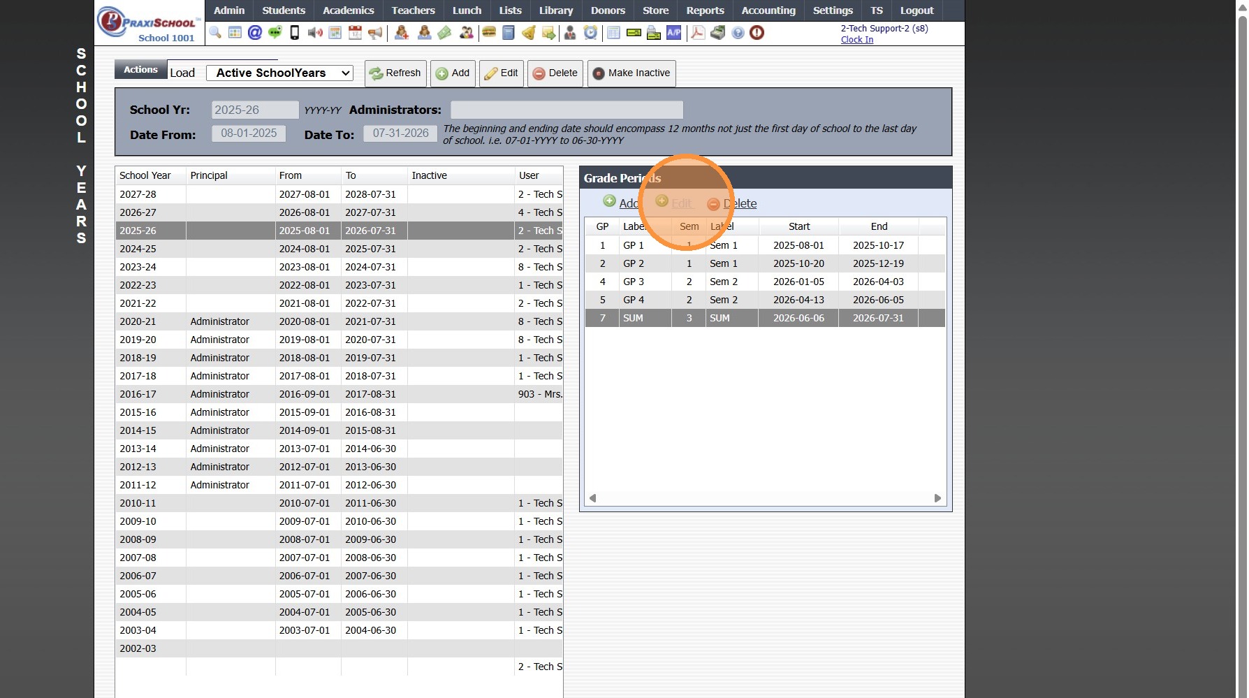 Editing School Year Dates