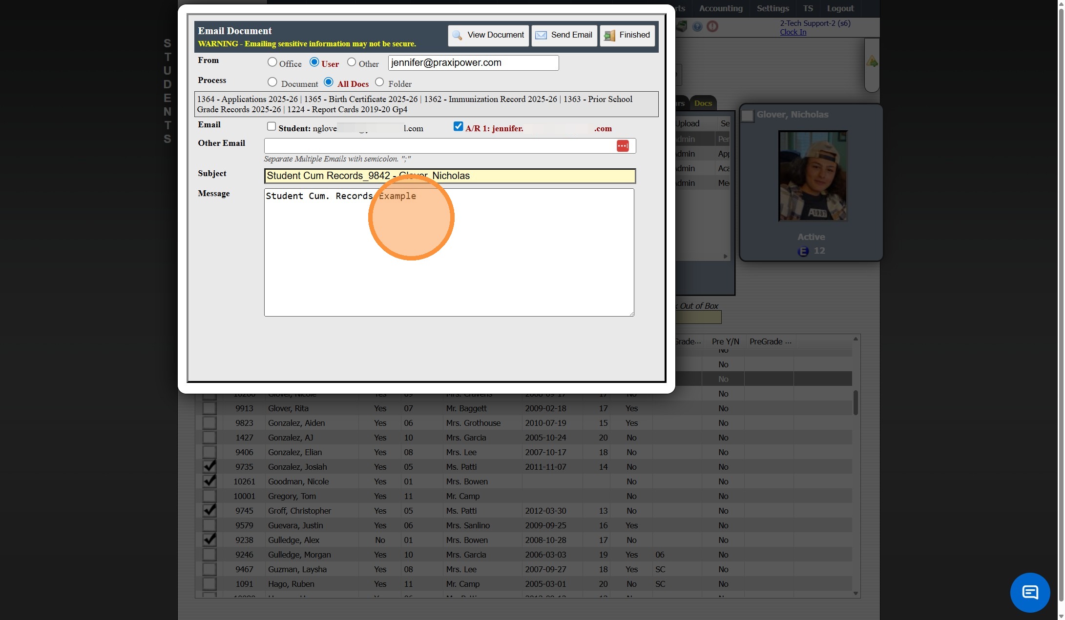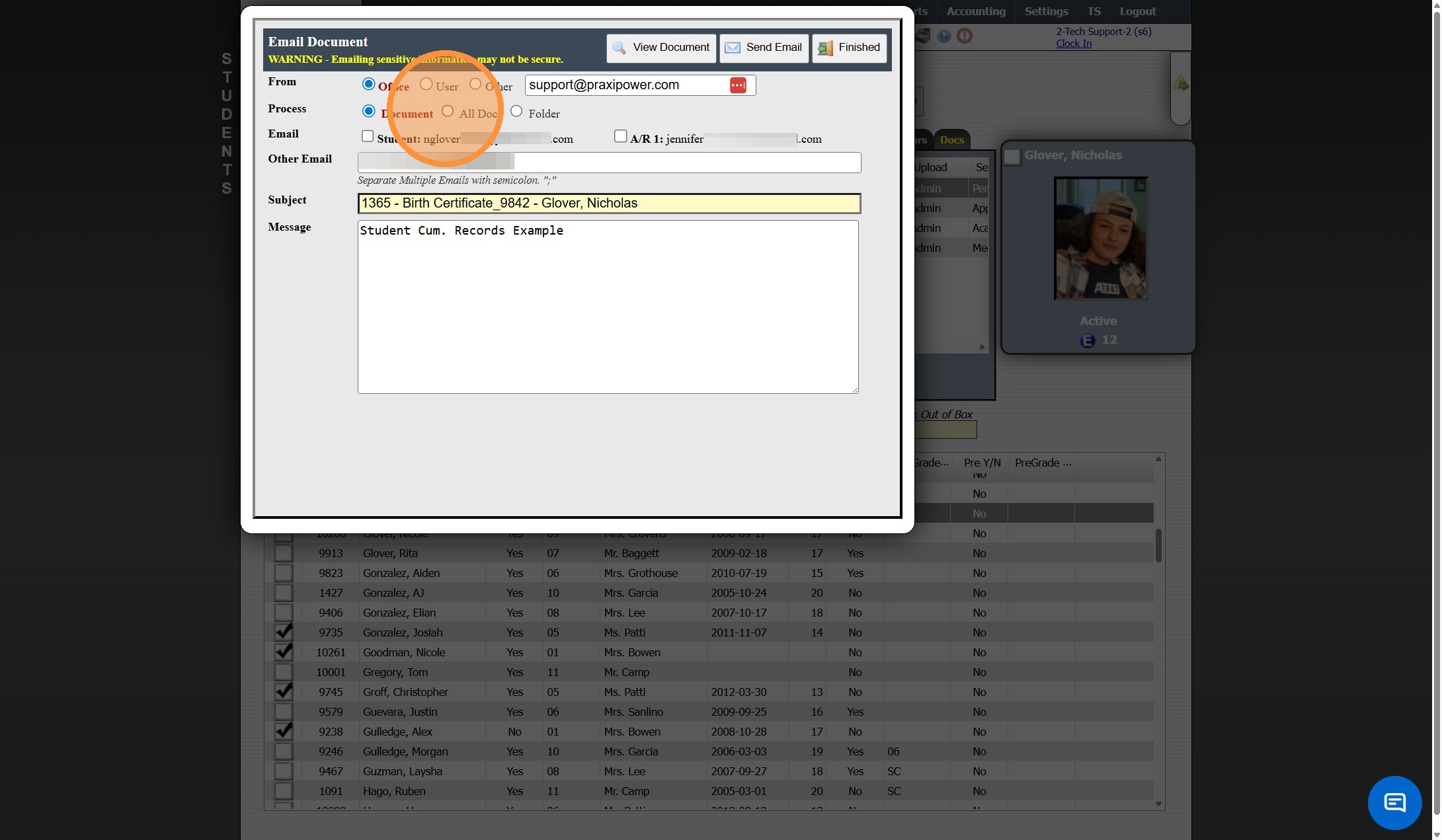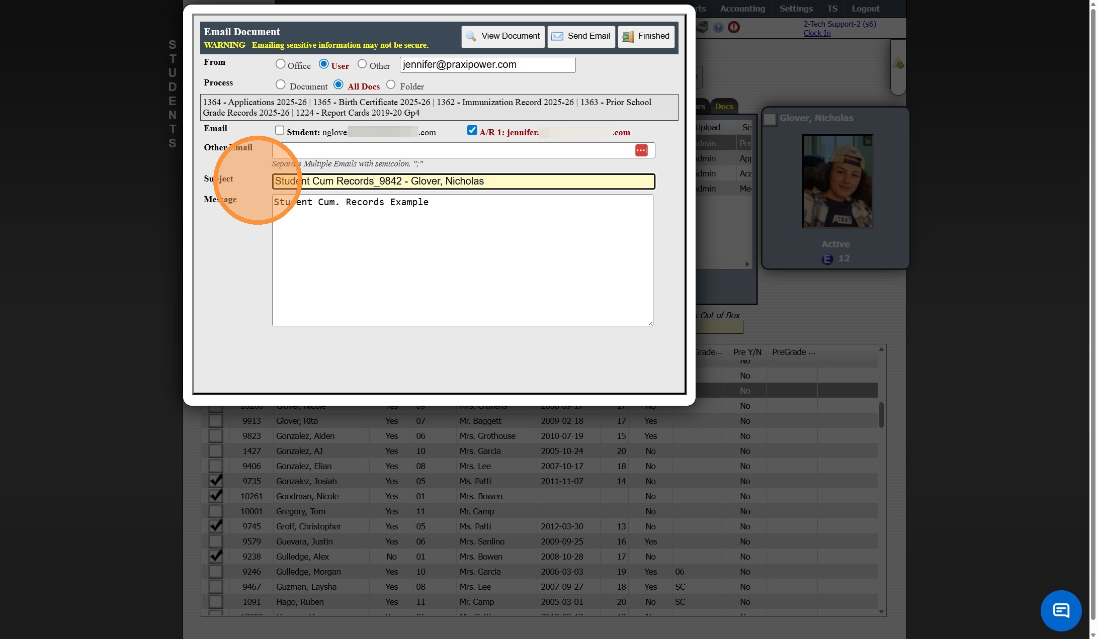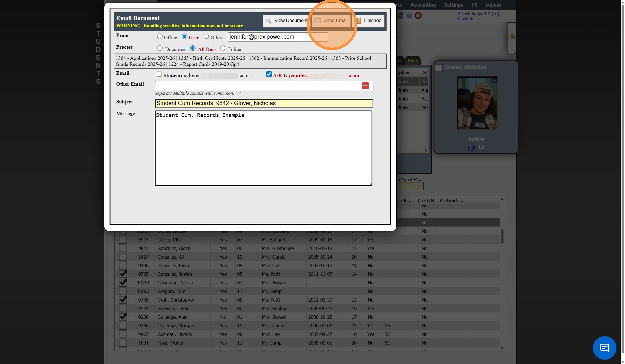 Emailing Student Documents