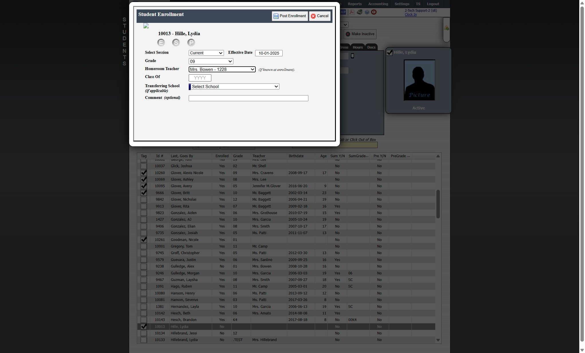 Updating the Homeroom Teacher in the Student File